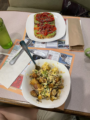 The food was phenomenal, I got a bacon, egg, and cheese on an everything bagel and a side of hashbrowns. With just some water to drink.
