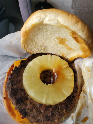Unedible cold "Hawaiian/Teriyaki" burger. Where's the teryaki? Almost looks tobacco chew spit glob than Teriyaki.