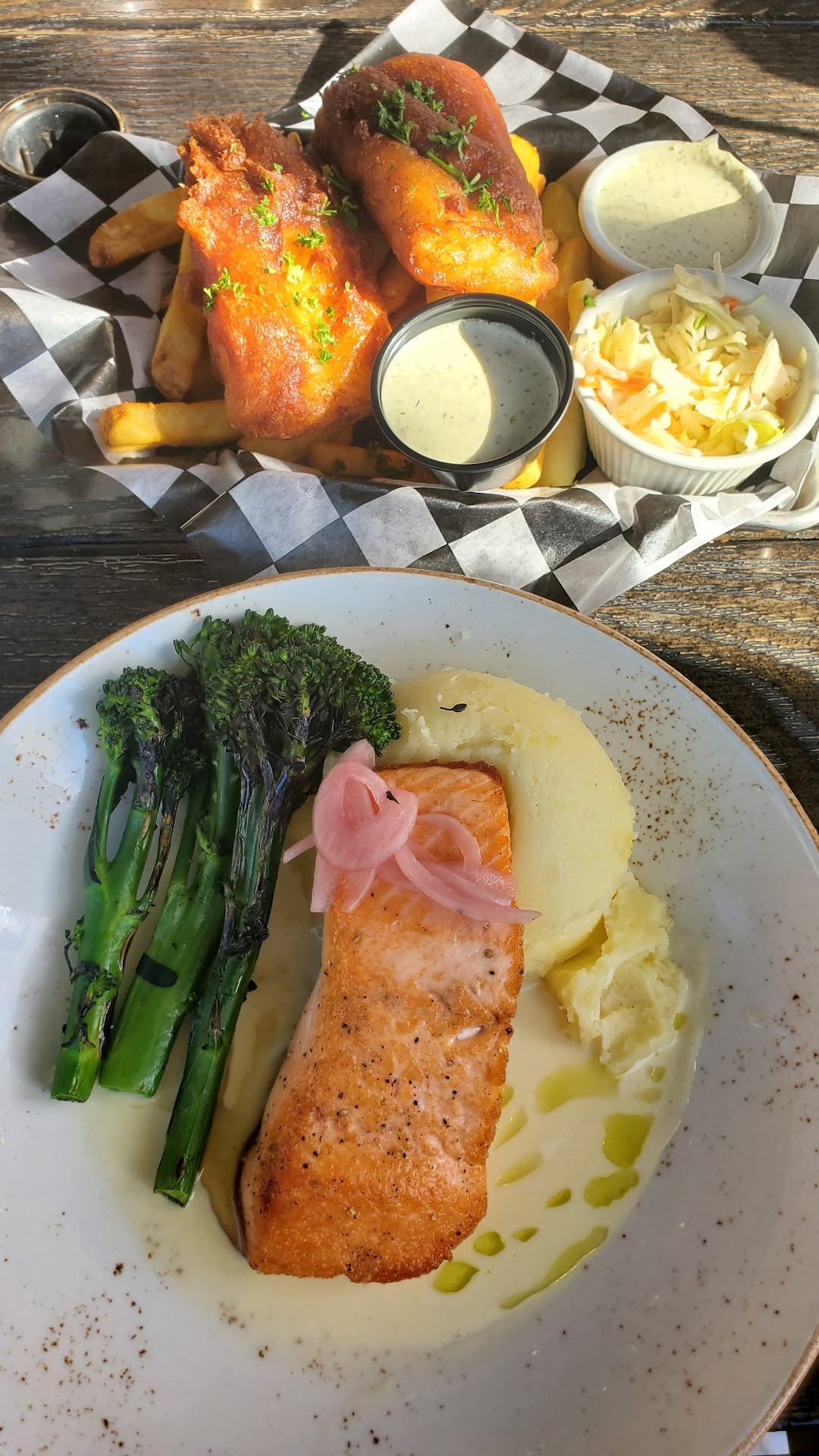 Food Quality: 4/5 The food at this restaurant was of excellent quality. The dishes were prepared with care and attention to detail, resulting in flavors that were both delicious and satisfying. We started with bread rolls and calamari for appetizers. I had a wonderful salmon dish that was delightful and tasty while my wife had the beer baddered fish that was also amazing. the overall quality of the food was commendable, earning it a solid 4 out of 5 stars.