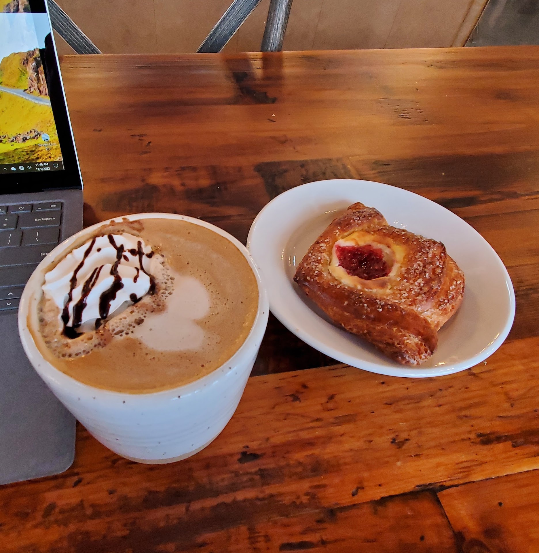 Four stars just because the environment is very nice and the coffee is delicious. However the food is really disappointing and I don’t recommend. We ordered a chicken wrap and the over easy egg/croissant with bacon. They heated both up for us but my croissant was still cold and hard and the egg on top didn’t look right to eat. I only took a few bites. My boyfriends wrap was way over heated to the point the lettuce turned soggy and the flavor was lost. We ordered a small caramel cheesecake as well and the texture was very liquid like instead of dense and cheese like. Their carrot cake is very delicious however. I would usually return food that was as bad as what we were served, but knowing we would be back for coffee and to enjoy the environment we just chose to let it go. We will be back often but will avoid the food until something changes. I’ve seen other reviews mentioning the same thing, so hopefully the quality changes sometime! Edit: The last time we visited our coffee was very burnt tasting. I’m sure it was due to volume as this place gets very busy. Hopefully as time goes they will find better ways to filter volume and ensure quality products are served. In the mean time we found another coffee house we’ll be frequenting on...