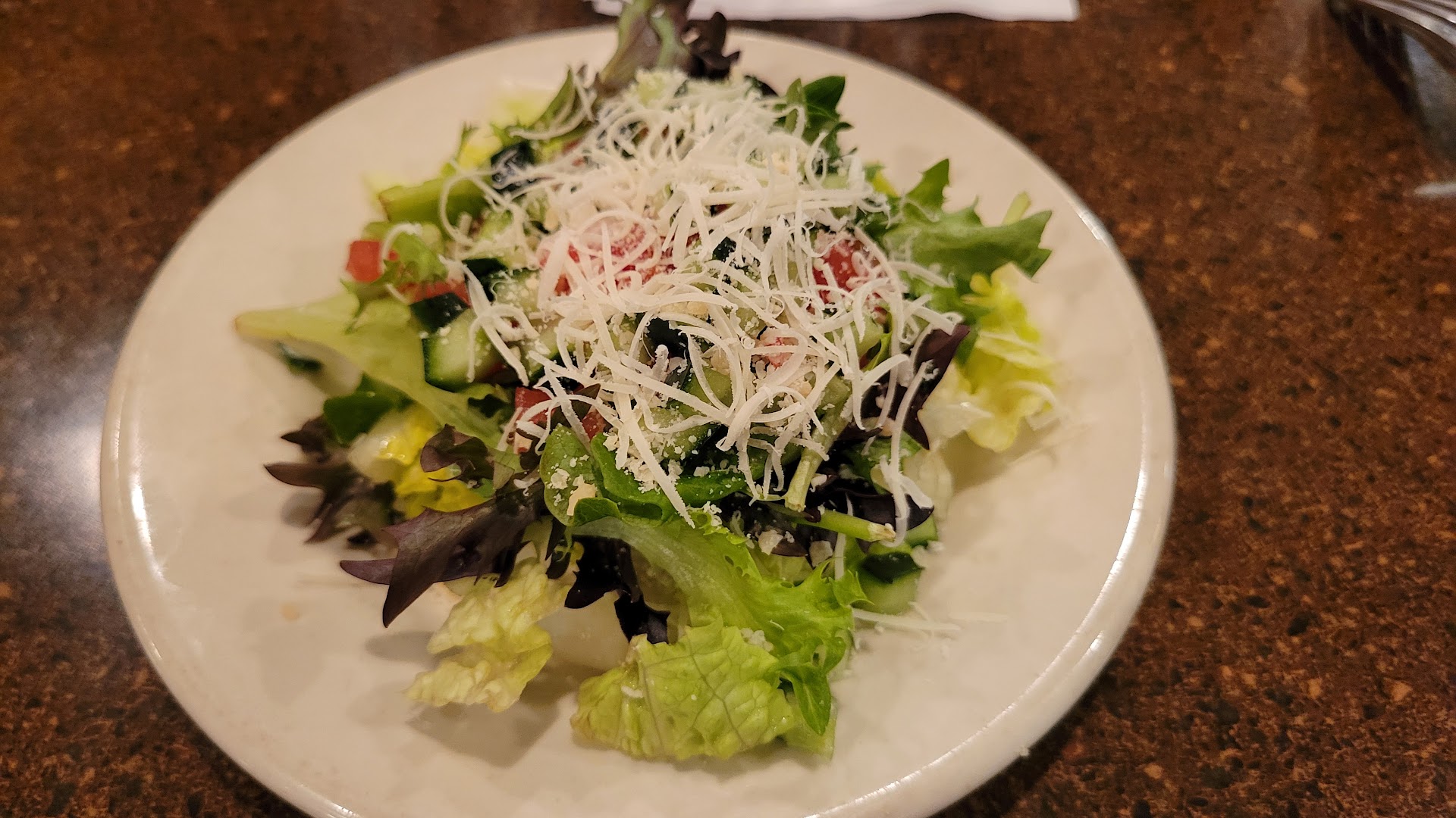 Mom ordered the lasagna, and I ordered the Rigatoni Bolgenes, the large portion with two sausages. So... to be clear, I am on a perpetual Atkins diet that I modify now and then when either the mood hits me that I want to indulge in some carbs, or something presents itself to be irresistible, otherwise, I pretty much shun carbs and have a somewhat fit body to show for it. The weather having been a little extra cold lately, I felt the need to stoke my internal fire with some pasta... and oh my gosh, was it delicious! A little extra grated parm and some cracked black pepper over the top and A-mazing! I tried mom's lasagna, and it was fantastic as well.