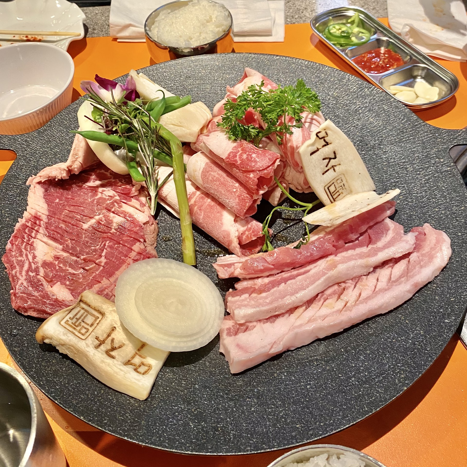 Then we ordered the Mukja A combination which was supposed to feed 2-3 people for $55. On the menu, it said we would get thinly sliced beef brisket, pork belly, and beef or pork bulgogi (we opted for beef). We were sooooo surprised when the waitress brought out the meats that it was a small tiny little tray of meats. I even asked the waitress on the spot is that all the meat we will be getting and she said yes...We got a small plate that maybe had 7-8 thin slices of beef, and ONE slice of pork belly (that's right ONE, not even two for 2-3 people), and then a small cup of beef bulgogi. That was a HUGE disappointment for the price we paid of $55 for a package that was supposed to feed 2-3 people. We both were not even close to full afterwards. They really need to re-evaluate their pricing or at least their portions.