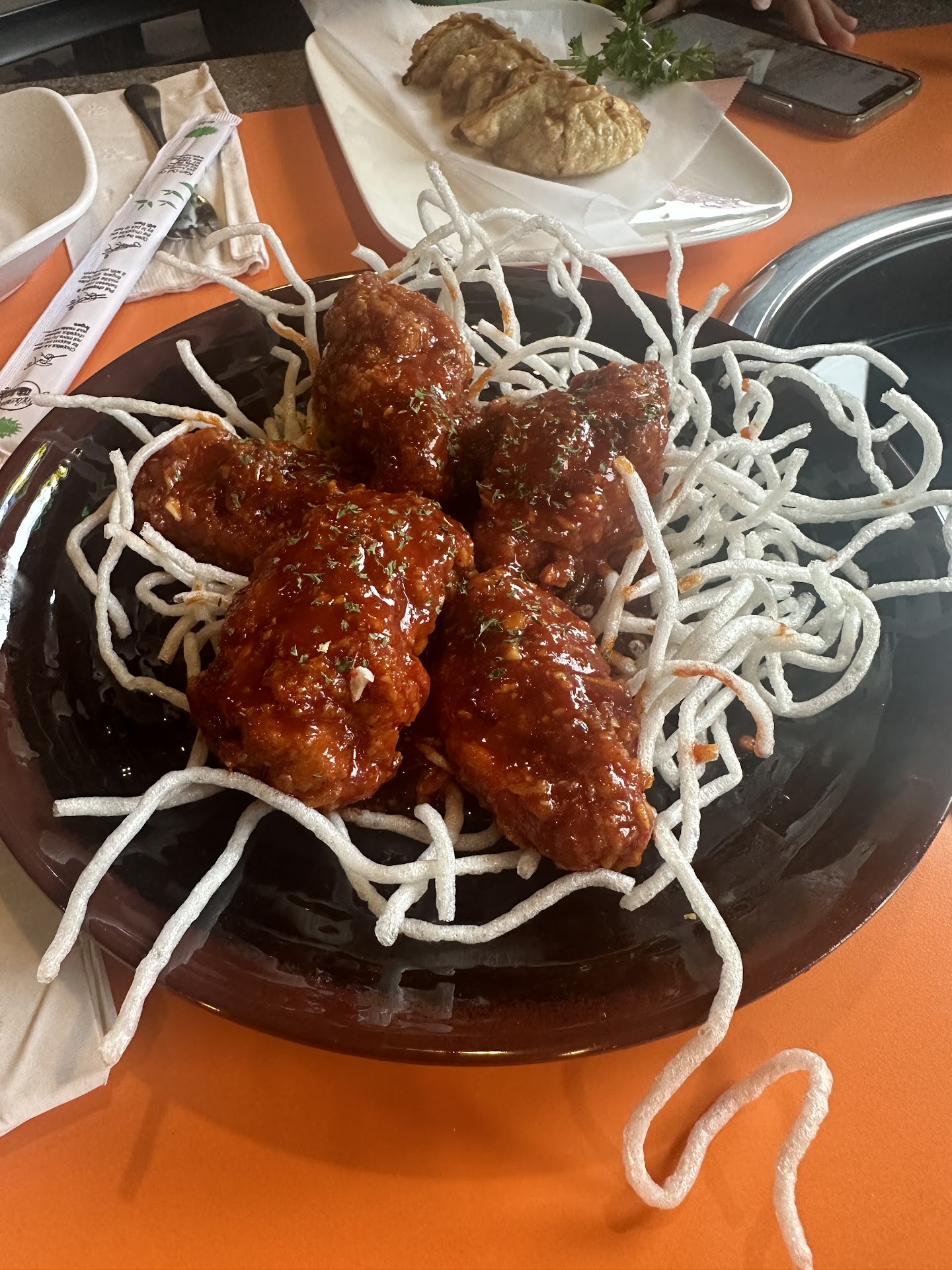 My coworker and I ordered an appetizer of the spicy fried chicken wings for $14...we got 5 wings which were really tasty but the amount we got for that price was bit of a shocker.