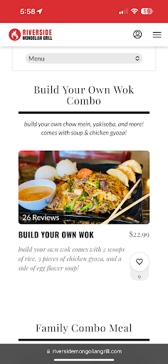 Investigating the restaurant's website, we were enticed. However, upon callling to order a "Build Your Own Wok" meal, we discovered that we could only place a "to go" "pickup" order through the website, not personally with the proprietor. As that involved providing a credit card rather than paying cash upon picking it up, we opted to go to the restaurant, order there, and take it home.
