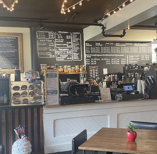 Read moreCute little cafe! If you love a sweet drink this place is for you. We got the cookies and cream latte and the specialty chai latte at the time and both were ok. They were very sweet which isn't our favorite and had a hint of tang or something to them which may have just been all the syrups in them honestly. We'll definitely try this place again but maybe stick with something we know instead. The service was slow and there were a few employees standing around and just chatting distracting the others, luckily we weren't in any rush. The footprint is pretty small so be ready to get friendly with...