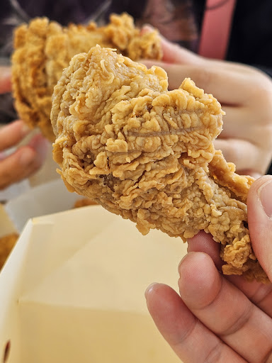 On top of that, the cajun spice is a notch more pronounced than a Popeye's spicy chicken, the chicken parts uniformly juicy and very much over-battered. The sides work out well, especially those little oniony hash browns. The fries never seem to arrive crisp, like they sit and steam before they are handed off. It's a minor quibble with such a delightful surprise find. Thankfully, it's far enough away that I won't be...