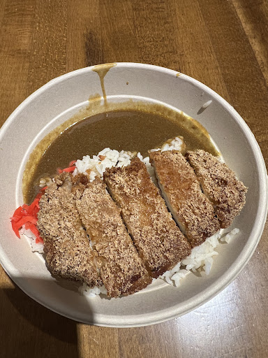 The roast bowls had very little except rice on one side, and a gravy on that other side that was supposed to be curry. It was bland. How bland? If you took a can of Chef Boyardee gravy, and added a teaspoon of curry powder, bland. The volume was insufficient for the amount of rice, and we both ended up throwing half a bowl of rice in the trash. The pork was dry and the chicken unimpressive. Some vegetables besides the colored ginger for “effect” would have been nice.
