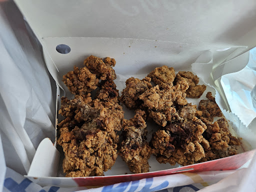 Ate at quanah location tonight while driving through. Granted it was 8 pm but no chicken at a chicken restaurant is tough. We ordered 2, 2 piece snacks with mashed potatos and gravy. Asked what kind of chicken we wanted ( which didnt matter) because we were then told only 5 pieces were left. All breasts and they were not making more. Scraped the bottom of the potato bin and tried to split not even one order between 2. We told him to just make 1 mashed and one wedges. He then scraped the bottom of the congealed teaspoon of gravy for the miniscule 1 order of mashed. (They were not good and the gravy tasted like corn starch thickened pepper). The chicken breasts were dry and like rubber. The crunchy breading was good and the biscuits were best i have had. Would I go back for biscuits and crunchy...