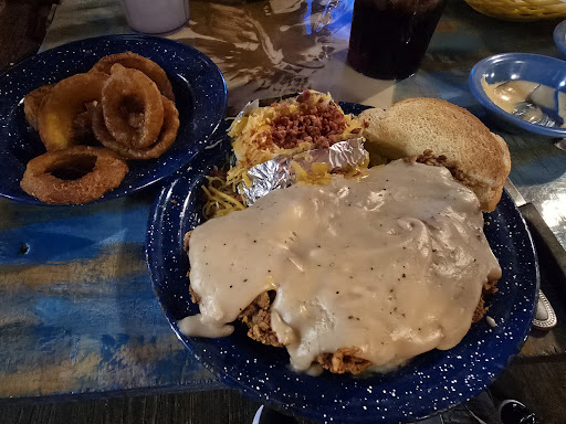 Waitress brought drinks out right away, then forgot about us. Never came back. Then we saw her bussing tables so I asked her if we could order. We finally ordered. Food took forever. I have open faced chicken fried steak. Took forever to get our food. It wasn't even warm when it showed up. So that tells me it sat for a while. Mashed potatoes weren't warm, and neither was mac n cheese. My wife asked for to go box. That even took forever, and the waitress excuse was she was talking to her aunt she hadn't seen in a while.