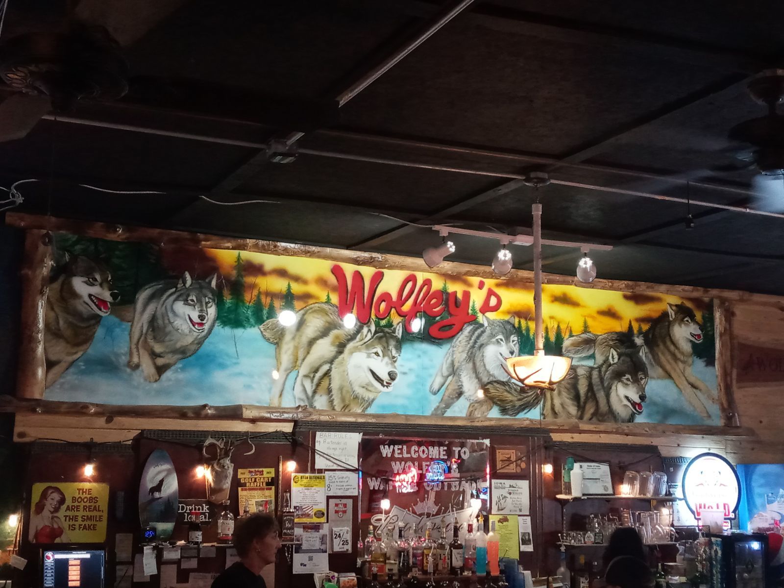 First time visit. We usually pick a new random place in Iowa to try. It's a nice location next to the river with outside seating, plenty of space. Inside had a nice small town tavern feel. We have seen many delicious looking pizzas coming out of the kitchen, wished that we tried that. The place was busy just acter 5pm, which we didn't mind plus expected for a small town like this. After seeing all these fresh pizzas and other items slowly coming out, we were getting excited to see these wolfey burgers but was greeted with "there's not much we can do when we are busy but here you go" while handing off the room temperature burgers with cold cheese on them after waiting 75 minutes. I could tell my daughter was disappointed and shocked since we waited patiently without any issues, but she was the only reason why I accepted them because she was super hungry and didn't want a "scene". So we ate our cold premade Sam Club Patties. We aren't daily visitors at any means.. I guess it was a rough day for this establishment. Those pizzas sure did look great. Maybe someday a second attempt will be made much later on. Taught my daughter how to grill the next day. She did well for being a first-time...