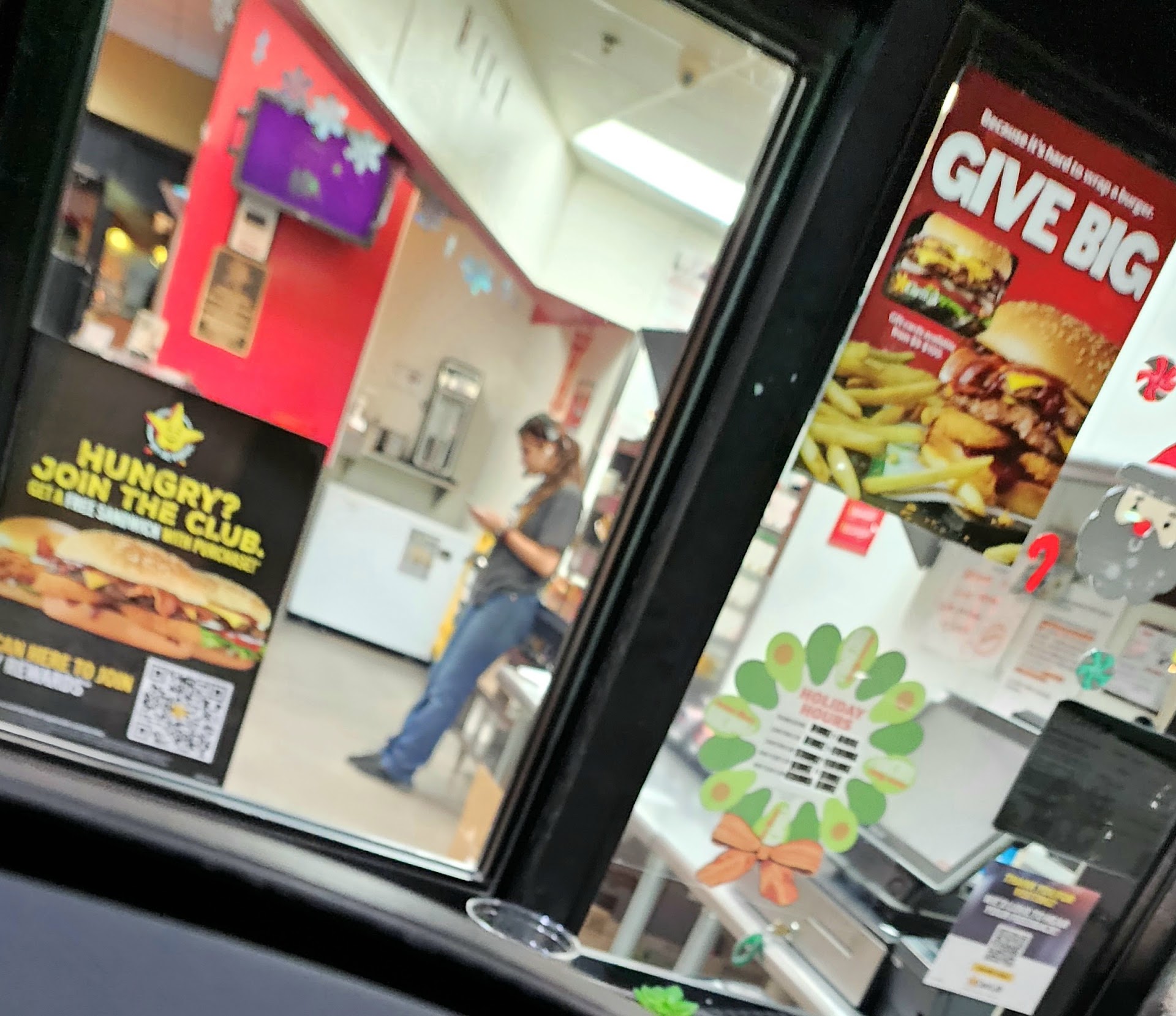 Read moreSo, so, so disappointed that I spent so much money on a burger here! We picked up a drive-thru dinner on our way home. We ordered enough for 3 people, and when we got to the window and paid, they had us pull around the front to wait for our food while they made it 'fresh'. Hm. We waited FOREVER. When it came out, to my everlasting shame I did not check the bag right there. When we got home, I was super disappointed when we pulled out our food. The 2 packages of fries were skimpy at best, like they only put in about half of the fries that should have been in there. The 3 burgers, all different ones, were a mess. Two of them were correct, but so sad and flat looking, nothing like the pictures they tout on their windows and drive thru signs. The 3rd burger, my burger, was not even what I had ordered, and they left all my toppings off. It was like they just threw in a kids' cheeseburger instead of my Famous Star burger. I literally threw it in the garbage and went to the gourmet burger place near my house that I love to get a real burger (which by the way, only cost about $2 more than what CJ is charging for their sad burgers). It isn't often that we get fast food burgers, but next time we do, I'll be nixing this place from the...