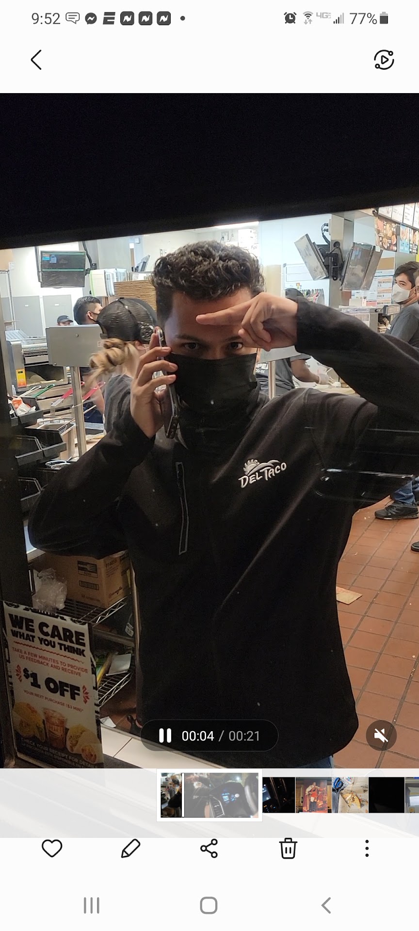 After two drive-thru orders were completed, made eye contact several times with a manager who was stocking take out boxes, as I stood at the counter waiting for my food. Without saying anything to me, she did eventually go to the other side of the food prep area, scanning the order LCD on the way by, and I could hear her ask the person working the line if they were working on an item that was specific to my order. She set aside a taco on a dining tray (part of my order) and then disappeared somewhere in the drive-thru area.