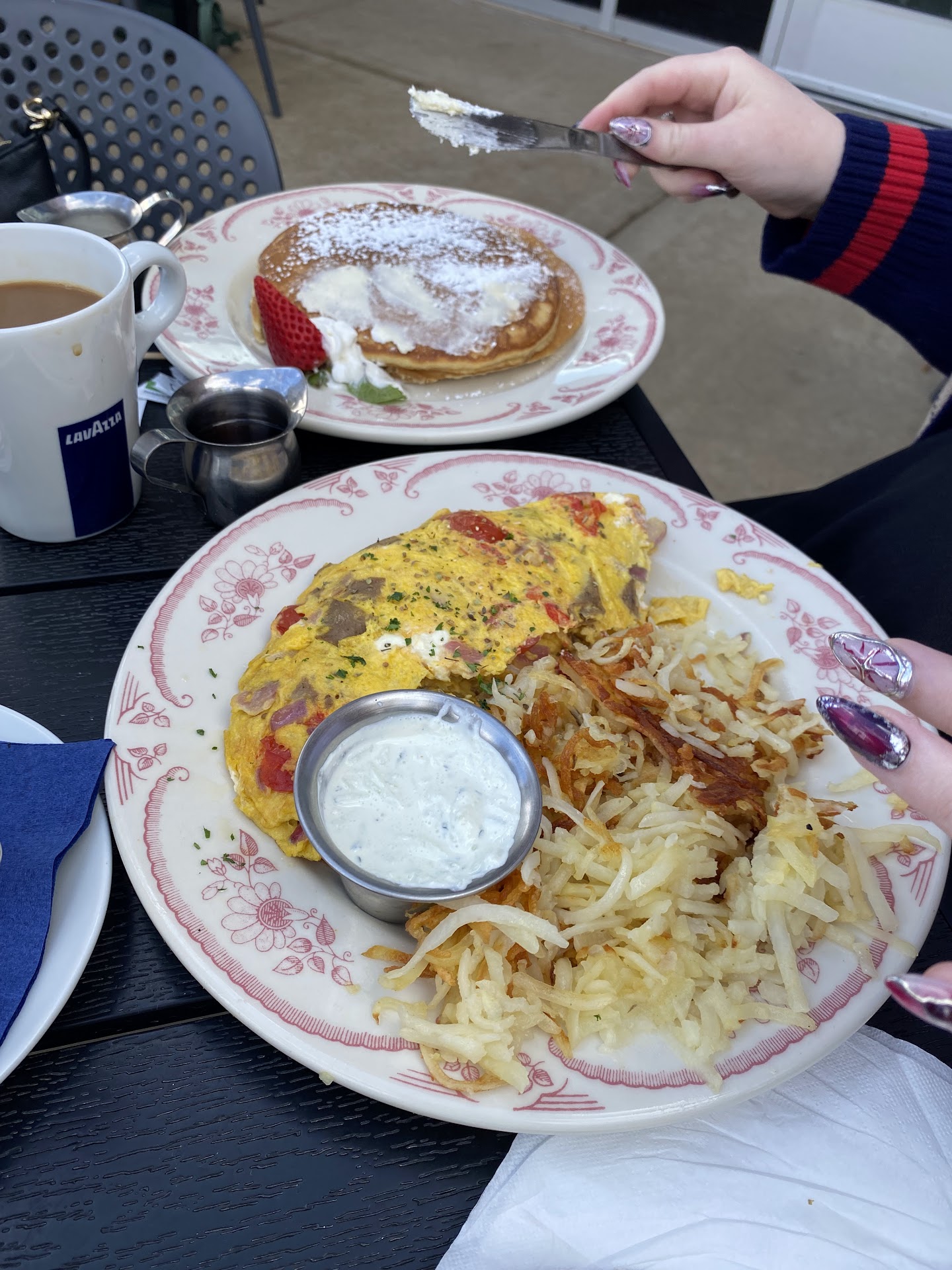 Read moreLet me start by saying I am looking forward to updating this review on my next visit here, unfortunately, they are experiencing some issues probably associated with being a new restaurant. It seemed understaffed, or at least undertrained. They didn’t know which tables the food was going to, often walking around with a plate and just asking tables if it was theirs. Bar drinks didn’t arrive to the table until we were halfway done with the meal (the table next to us, never even got theirs). One waitress poured drip coffee on my sister’s purse while she was refilling drinks. The food was good! We had corned beef hash, salmon omelette (pictured) and Greek omelette (pictured). The pancakes were tasty, but the pancake syrup (not real maple syrup) tasted like straight up chemicals. I literally thought it had gone bad and had to stop eating my pancakes. Our waitress was all over the place at different tables, but always took care of us. Overall, the food was good, the service was bad, but I’m hoping that improves with time. Patio is...