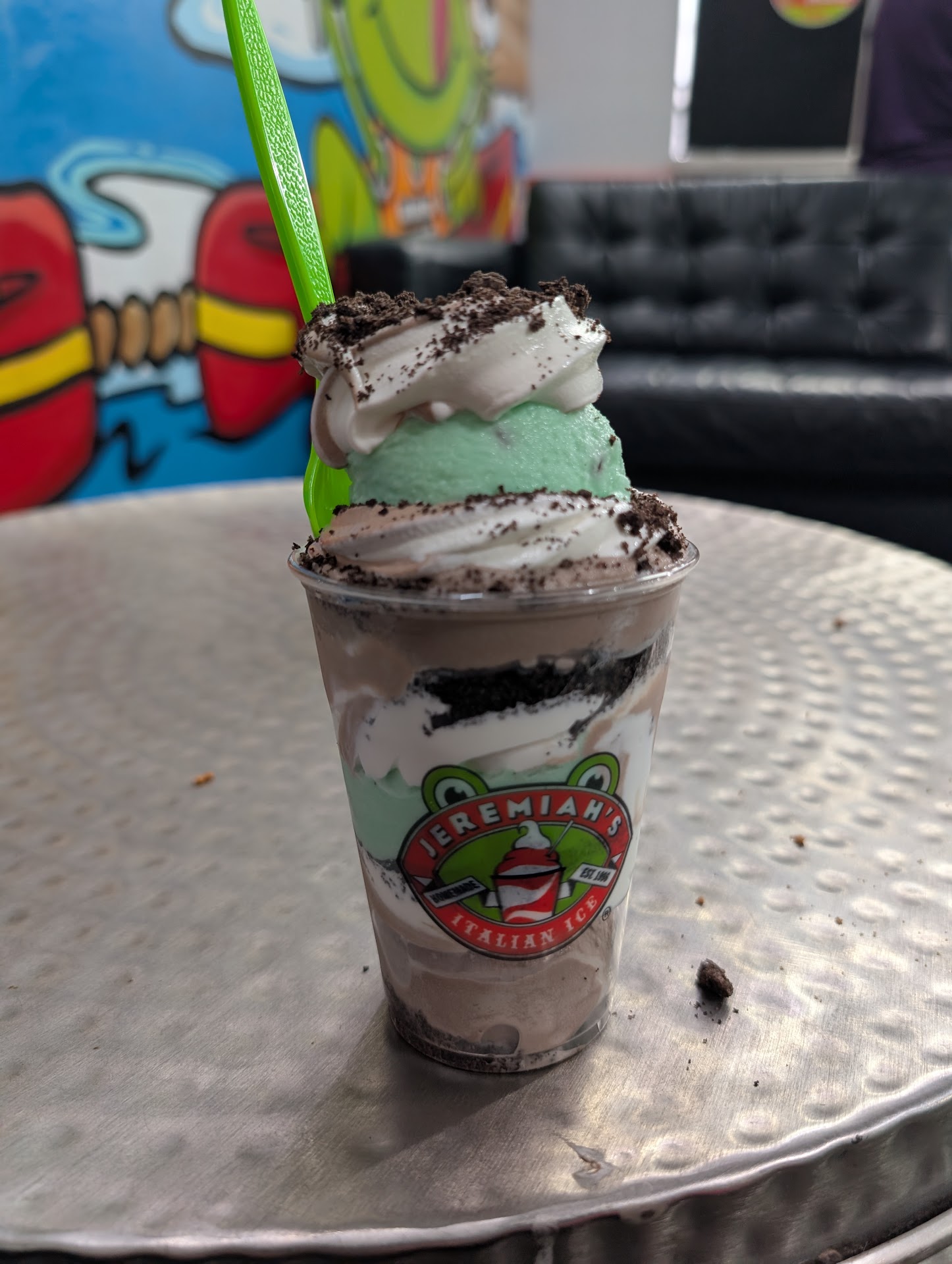 Next up was the mint-chocolate Oreo masterpiece. Think of it like the lovechild of a Thin Mint and a snow cone. The mint was crisp and refreshing, while the chocolate was rich and indulgent. Topped with crushed Oreos for that extra texture, each bite (or slurp) was heavenly.