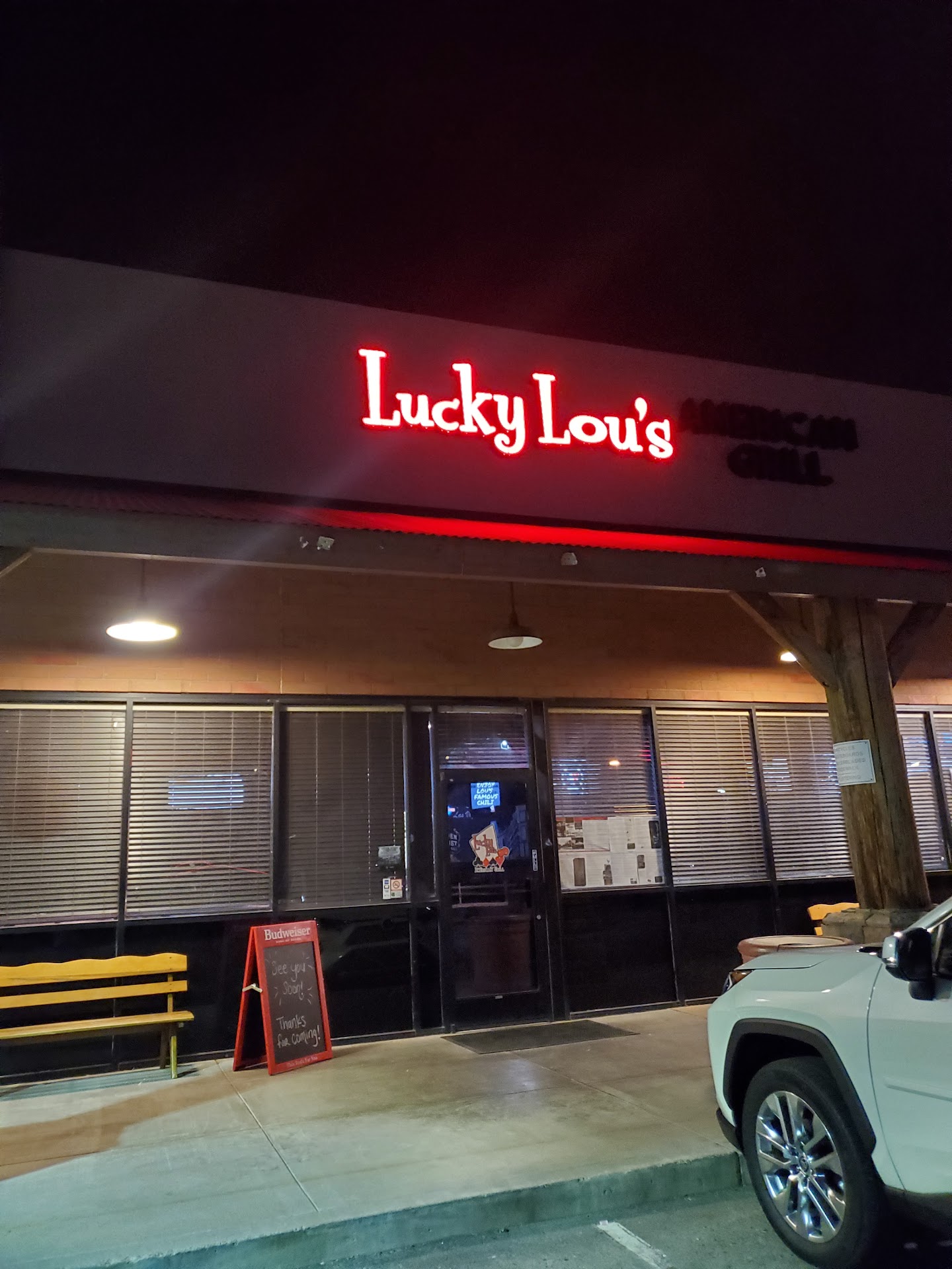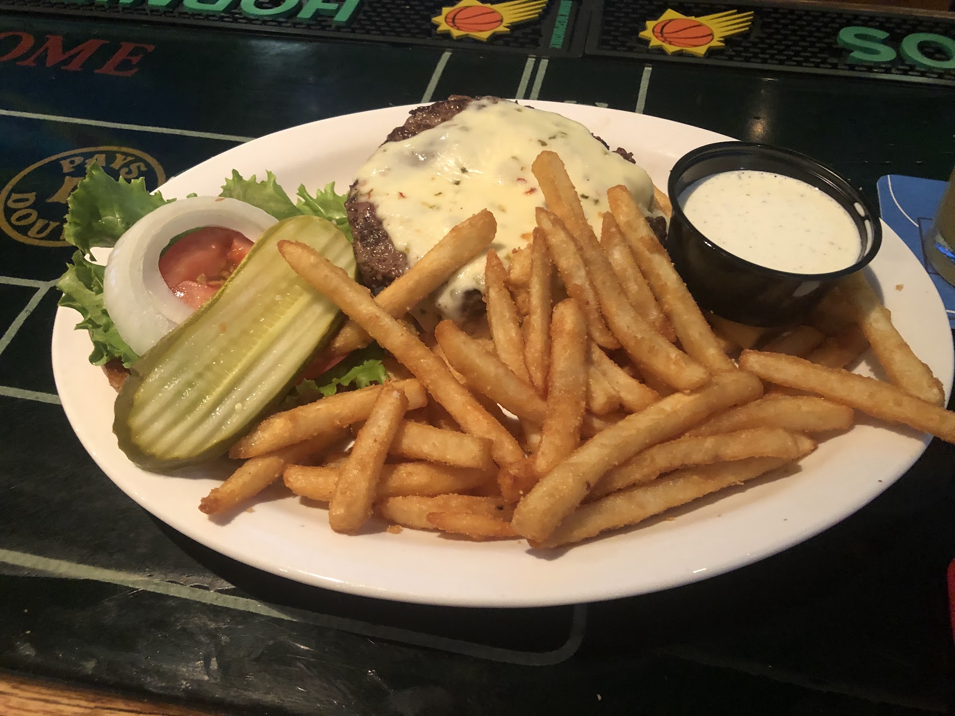 Read moreMy friend invited me to dinner at Lucky Lou's, a friendly little place to the side of Bashas shopping center at Power & Chandler Heights. When you walk in, you can sit at the bar, the restaurant, or patio. They have a variety of seating, booths, low and hightop tables. The atmosphere is casual with chalkboard written specials, tv's and retro casino themed art on the walls. Our server, Jordan, was so nice, friendly, and answered all of our menu questions. You absolutely must try the fried pickles! They are delicious, and I will dream of them. The pickles are cut in large sandwhich slices, not little rounds. The breading on the outside is so crunchy it reminds me of eating a chicken sandwich with pickles, but without bread! Amazing!!! Dip them in ranch, and they are creamy, salty, crunchy and a little sour. Yummy! My friend JF ordered the French dip with au jus and onion rings on the side. I ordered the wings combo, 6 bone in medium wings with onion rings. They have several sauce options. The onion rings were coated with a thinner batter but crispy as well. I liked the pickle batter better; maybe they will do onion rings that way one day. Both dishes were flavorful and finger licking good! Oh, and the glasses of soda are huge. They have dessert but I didn’t try any this time, but I will the next time. Give Lucky Lou's a try; you will be...