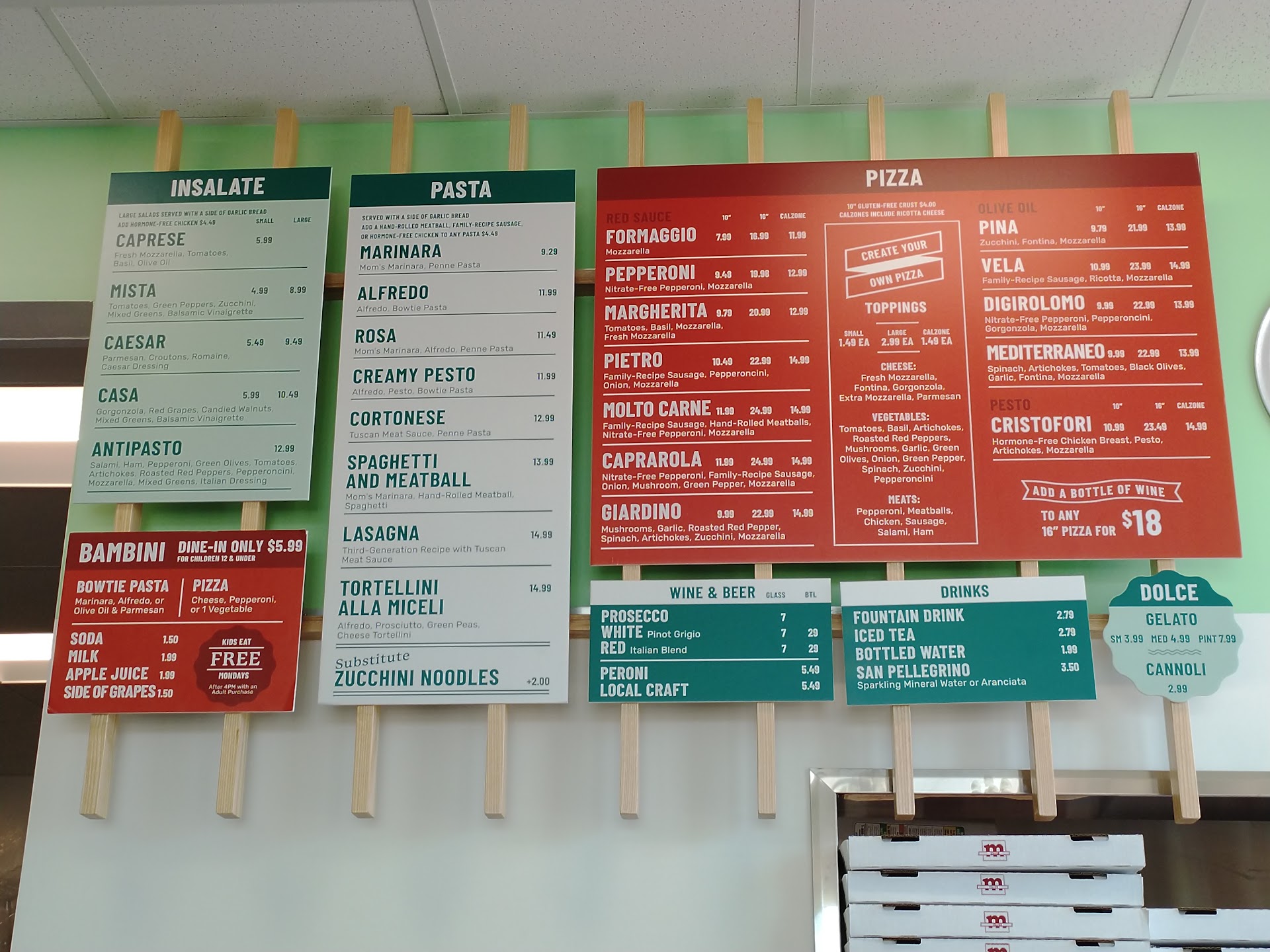 Read moreI was impressed by what the food looked like, But NOT what it tasted like. We decided to try it and we did , will not be going back. Large piece of Lasagna, with hardly any meat in it. Tortellini, was fine but the sauce with peas and prosciutto was chalky and warm , and very little flavor, I had to reheat when I got home The bread, had so much salt on the top we could not eat it. and was hard and tough. Like it had been cut a long time ago and set out. Over priced for a fast food Italian place. Also there was a girl with long brown hair doing something with it looked like zucchini noodles I think , she was a few feet from the trash and she should of been in the kitchen doing this and had hair tied back or up, or even better in a net. I noticed the guy in kitchen had a scarf on his head. That was a very off putting, and glad I did not order those. I did not see any one managing the staff looked like mostly kids and instead of doing things like asking guests if they needed anything else, picking up plates, or sweeping, or asking guests if they would like another drink or something., they were just standing around talking. There was a man picking up pizza, but he had to wait for a pint a gelato, when it should of been ready and waiting for him in a bag to pick up, it also should of been written on the ticket so he did not forget, luckily he remembered and had to ask the staff for it. Then the girl started to get it for him, and then she passed it on to another guy who could scoop easier. So while they were doing this he was standing there with his pizza, while it was getting colder...