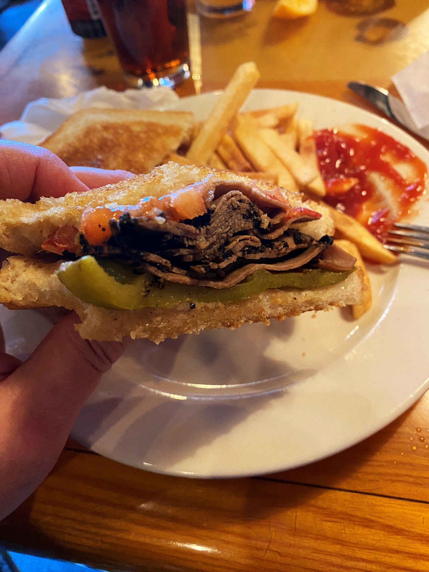 I ordered the fish sandwich with sweet potato fries. The fries were delicious! I really liked those! Half of the fish sandwich was very good with the bread perfectly buttered and grilled. The other half...the bottom of the bread was completely soggy, and there was nothing wet anywhere on the plate to make it so. It had to have been soggy from before it was put on my plate. The fish was breaded and fried very nicely, but I think they depend on the tartar sauce being used for flavor. I don't like tartar sauce, and the fish was pretty bland by itself. They also have tartar sauce misspelled in the menu. I wouldn't order the fish sandwich again, but I would be happy to eat the fries again.