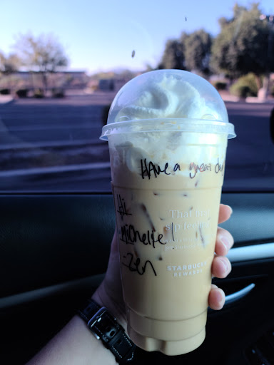 Starbucks at Higley and Chandler Heights is the absolute best! They always make my drink just right and they ALWAYS bring the love and cheer. I get personal messages that brighten my day from Charlie and Xenia. If I'm having a rough day I know I can always count on the Starbucks baristas to cheer me up. Andrew, Sydney, and Ramani at the window are always so happy and smiling. If they don't leave you personal messages like mine chances are you'll get a sticker that says, "Spread the love!" And that's exactly what they do at this...