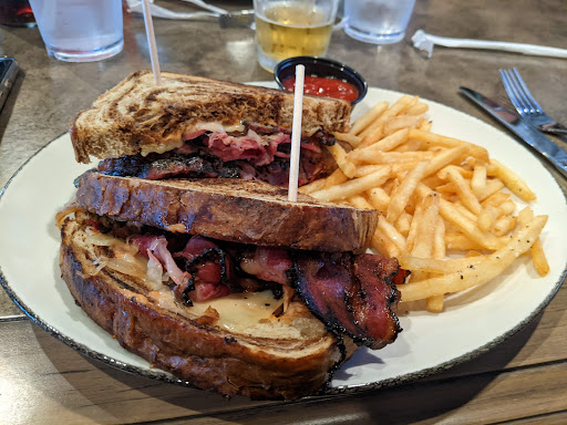 The burger came with no bacon or grilled onions, I ate it - didnât want to be one of those people to send it back and didnât really have time for it (next game starts in an hour). The manager asked how the food was and I let him know what the burger was missing and he apologized and walked away. He had a tendency to call me cutie or sweetie canât remember but didnât really care for it :(.