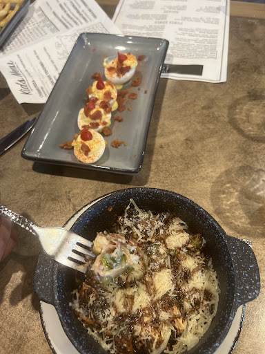 We ordered the brussels sprouts and the Sundevil eggs as appetizers. The Brussel sprouts came out under cooked and under seasoned with minimal balsamic drizzle. The server overheard us discussing them, and promptly took them back to have them remade. The sun devil eggs were average at best, nothing spectacular there. Upon arrival of the freshly made brussels sprouts, this time done by the kitchen manager, The seasoning was better but the brussels sprouts were still underwhelming. I literally had two bites of them and never touched him again.