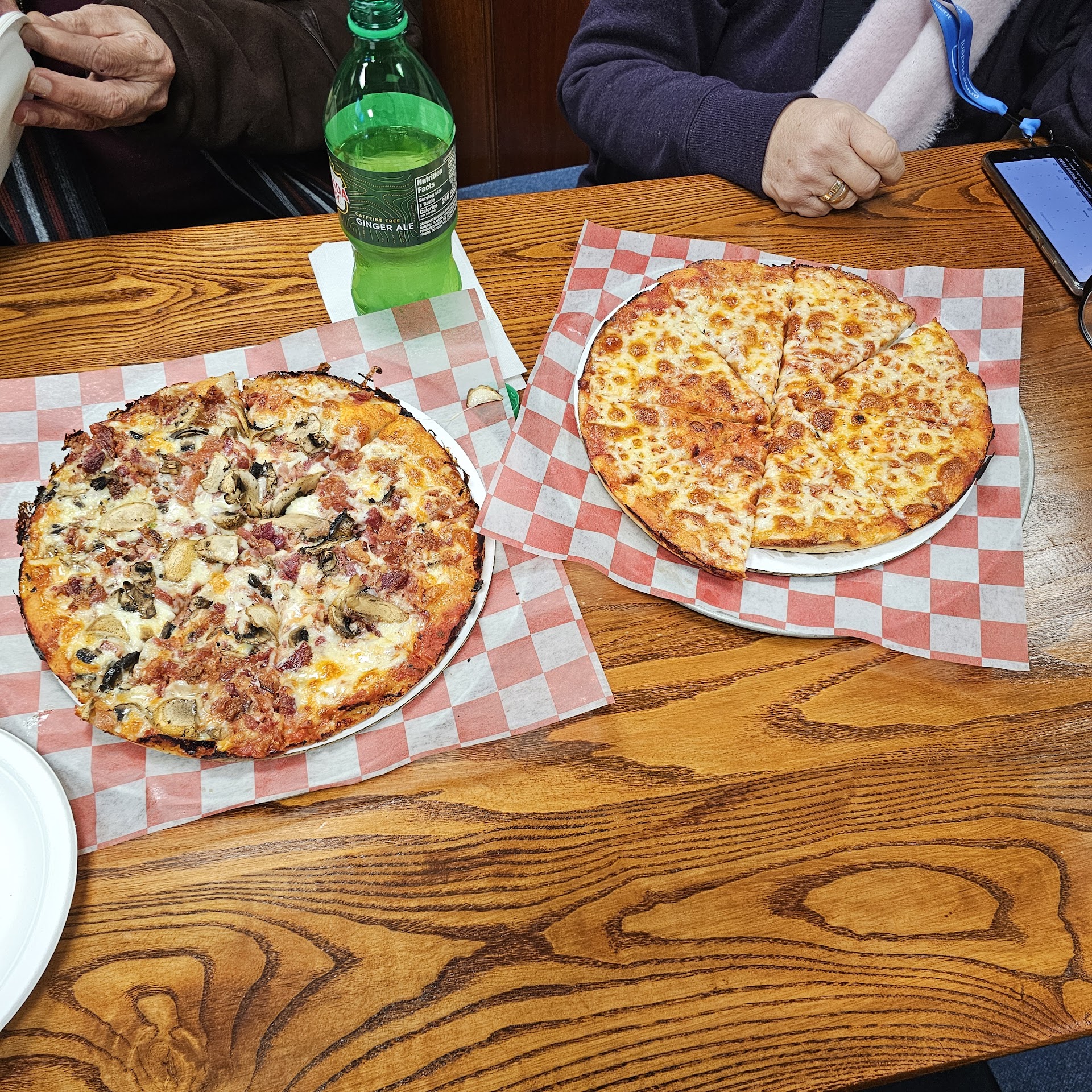 Read moreWe ordered 4 pizzas, one hamburg and onion, one onion, one cheese and a chicken ranch. We got two onion, one cheese and the chicken ranch. With the exception of the chicken ranch the pizza was awful. Too much cheese and almost no sauce. The dough was saturated with grease and they had no flavor other than the oil from the pan. The grease actually came through the bottom of the box on an onion pizza. We asked for them crispy and we got undercooked pizzas. They did...