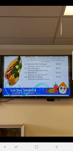 Was sitting in bed contemplating what to eat for lunch and ooh look, a "Hot and New" bánh mì joint in Quincy! It was a quick drive over to the North Quincy T area, and easy to find street parking as it's a Sunday. This place is definitely new, and much more high-techy and clean compared to your typical Vietnamese mom & pop/hole-in-the-wall shops. Think TV screens displaying menu and bright lights. Immediately when I entered I was greeted by multiple people who worked there, no doubt that they were all friendly and genuinely appreciated the business.