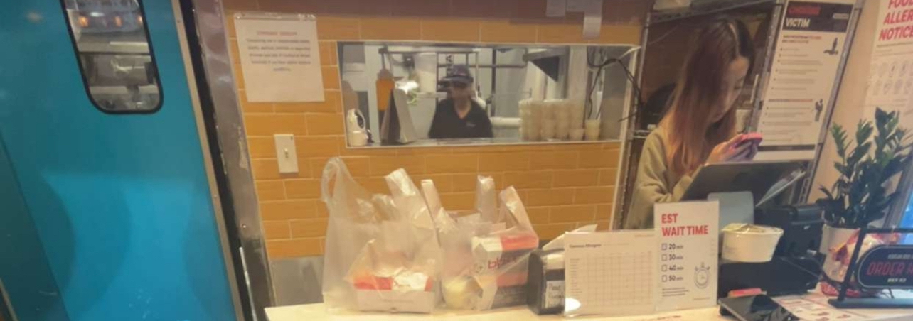 Our cashier is amazing and gave us excellent service. The lines were long but she was smiling, greeted everyone, helpful and friendly. She was super attentive and gave us extra sides when we asked.