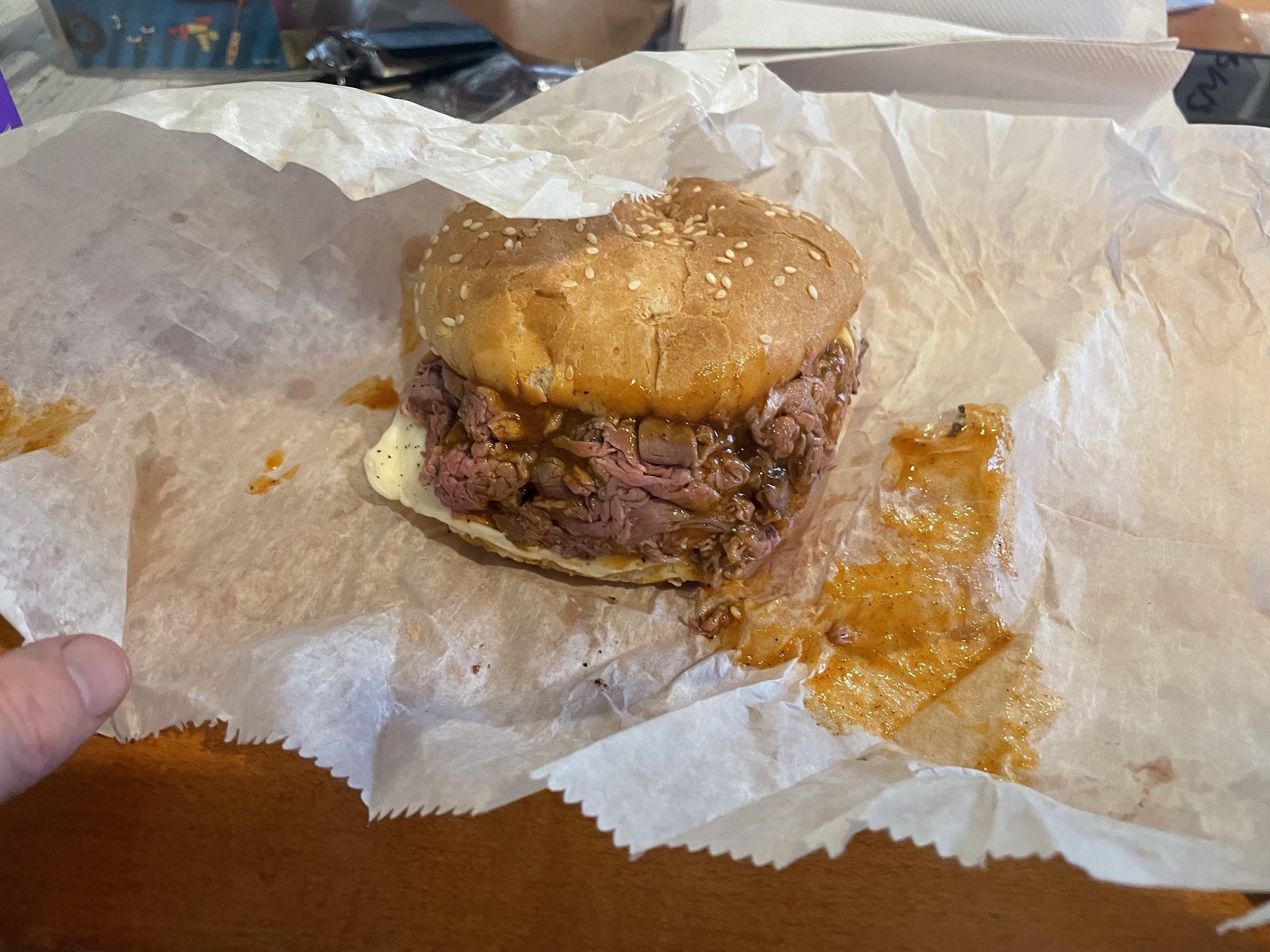 I’m very disappointed in one of the places that I actually go a lot. I ordered a regular roast beef sandwich with extra barbecue sauce. I’m a delivery driver so I only get a certain amount of time to pick up my dinner so getting a sandwich that is not appetizing to me and I even paid extra for the extra barbecue sauce. This is a $12 sandwich.