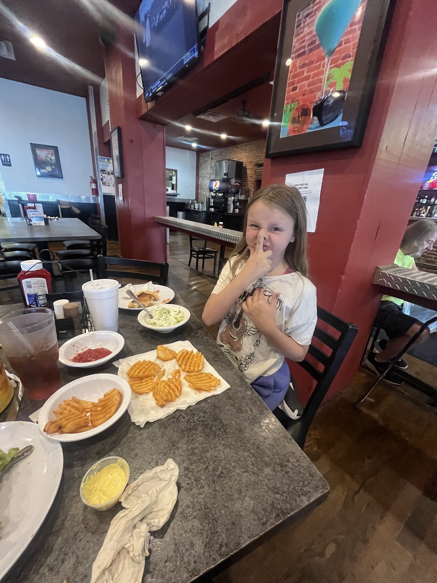 Read moreMy family and I took my husband here for lunch on Father's Day. We got here at 1:20. We were seated by 1:30. Our waitress came over immediately, and took our drink and appetizer order. So far so good. 👍 By 1:40 we placed our order. We waited and waited, and waited. It was 3:15 when our order finally came up. We could see the window from our seat and it only sat there for about 30 seconds before our waitress brought it to our table. I was not upset by the wait although it was a little extreme for pre-made 🧊 cold food. I ordered the baked potato lip. It did not come out as pictured... not even close!! There was 1tsp bacon bits and 1 tsp shredded cheese on it, no butter, no green onions. The cheese on top was not melted because the potato was not hot!! The lip was not hot, it was not even warm. It was cold!! We waited 1 hour and 35 minutes for cold food!! I did not eat mine. Not even one bite. When I mentioned to the waitress that our food was not as ordered, she got very snippy. She grabbed the menu and told me it was exactly what I ordered and they were out of green onions so they were just omitted without telling me. I wanted the green onions on my potato. I kinda wanted it warm as well. A dry cold potato 🥔 with very little bacon and shredded unmelted cheese in not what I ordered. My son ordered lip dip and it was cold as well. The cook needs to check the temperature of the food he's serving before he makes someone terribly ill. The first time we ate here, the food was really good. The second was ok, this time not good at all!! I will not be going...