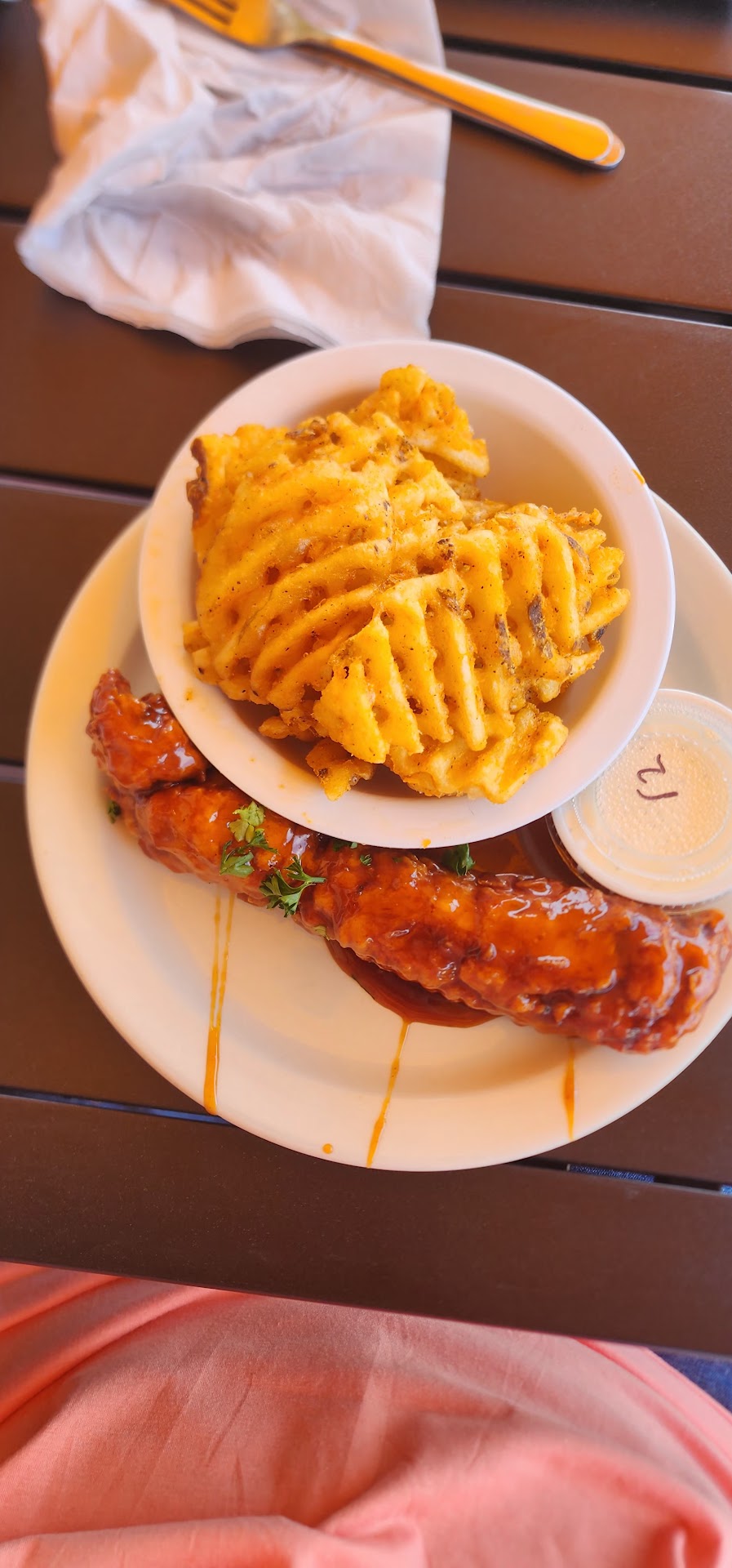 Horrible experience! We came in and waited a short time to be seated. I immediately needed to use the restroom (no paper towels or drying apparatus.) While I was in the restroom, the waiter/waitress brought menus and my husband ordered me tea. I wanted water, but was like whatever. I look at the menu once I returned and they don’t have small options on there, or a child’s menu. I just had stomach surgery and can only eat 1/2 cup to a cup of food at a time. So , I went to ask for a kid’s menu due to this purpose. The waitress looked at me like I had three heads since she was busy shoveling a huge plate of food into her own face (they had only been open 2 hours at this point, but girl MUST have been starving.) At the time she handed the children’s menu to me I asked how much it would be, since there was no price on the thing. She said 5.99. Okay! AFTER we ordered, she decided to tell me there is an up-charge since I’m not a kid. While I understand that “rule” in general, I had never been actually charged an up-charge or refused to be allowed to order from it. IT’S THE SAME AMOUNT OF FOOD NO MATTER THE AGE, YOU IDIOTS!! We eat out probably 4-5 times a week at different places, and this has NEVER happened elsewhere. Usually, the venue is extremely kind and even offer tips to get a variety of options, as in ala-carte goodies just added to my husband’s at an even lower cost, which we may have stayed and done, had the service had been proper. Why would I order an entire plate of food just to take 3 bites and throw the rest away? So, I said I just won’t be ordering, and thought to myself I’ll just share my husband’s, since he generally don’t eat all of his anyway. He was livid and said to cancel our entire order. We went to pay for the two sips of tea before we left and they charged almost $8 for the tea! She said it was because it,s Pepsi products. Hu?!!! When my husband reluctantly paid, this starving waitress threw his change into his hand, as if he was the problem. Oh, and I later found out that all those nifty sauces they offer, as if they are included, to dip your chicken in, costs a small fortune, as well. Easy to spend $80 on a meal for two...