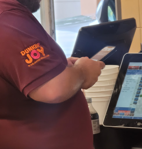 So I had the most rude experience at this DD today. I go to this DD maybe 10 times a week since it's on the way to and from work. About half of those times I go in woth my dog. She's a year old well trained puppy. Normally when I go in with her the staff are all friendly and talk to her and she talks back. So today I go in with her and as we I am ordering both the staff member and another customer are talking and admiring my pup and my pup is talking back. In the middle of me ordering a staff member walks towards us and says "if you can not control your dog you're going to leave, I cant hear when people are giving me orders." Npw my puppy wasn't barking anywhere loud or even alot. This staff member then turns around to the drive through window and instead of giving his full attention to putting orders in he goes on his phone while taking orders. asking customers while on his phone to repeat what the ordered. Now it would have been one thing if my dog was distracting him from working but he was doing thay himself. I asked the staff member to speak to the manager to which I was told the person on his phone was the OWNER. So if anyone is ever in the drive through wondering why it's taking so long it's because the owner thinks his phone is more important than taking orders. Lastly mister Owner there are better and more polite ways to talk...