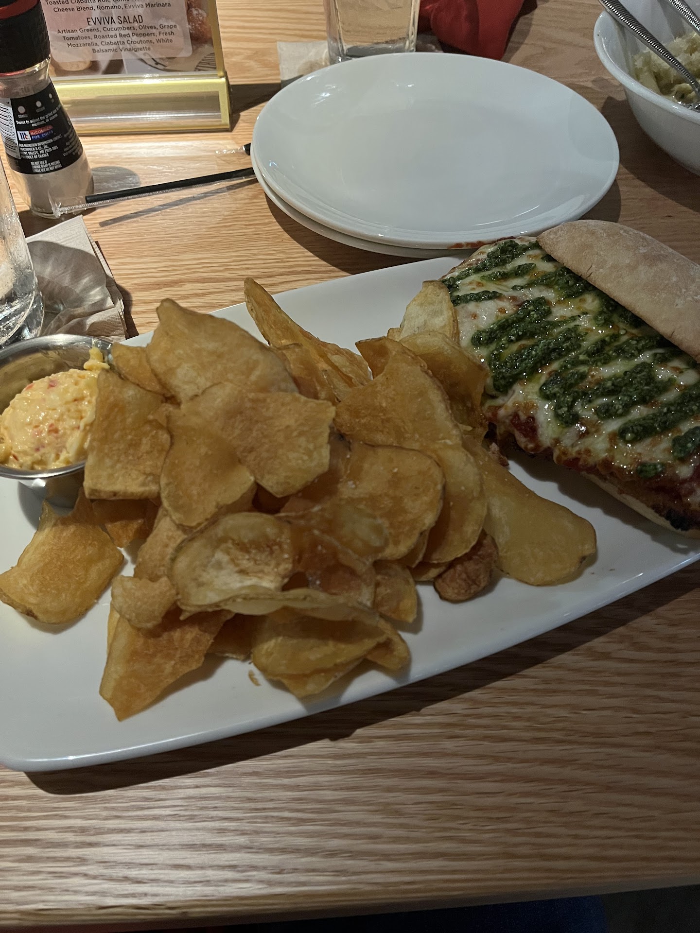 Read moreI rarely do this….but I really wanted to give this place a try….and i regretted it…. Upon walking in, host was very awkward and not welcoming. As a friend and I sat at the bar we waited almost 10 minutes to even be acknowledged and get menus….meanwhile one of the managers was chitchatting. I asked the manager for hand sanitizer because the soap wasn’t coming out the little dispenser in the bathroom. I waited 10 minutes and i had to remind her because she forgot. The pizza we ordered seemed a bit soupy. Sauce and cheese was running off and just lacked in flavor. The other GM came out and was moving things around the bar but he had the worse attitude on his face and was grilling me and my friend but then being nice to the other guest next to us. Would hate to go to this possibility of thought but it’s seemingly was interesting how they were not of color…and we were….we felt dismissed and i think they caught on because towards the end they were overly nice. I think this place has potential….but it comes off very disorganized, bland, no culture or seasoning. Reminds me a TGIfridays that closed down and reopened with less decor...