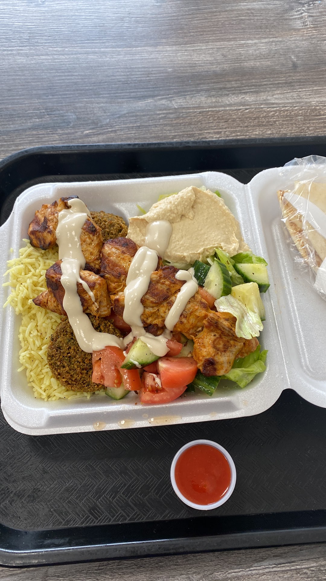 Read moreFALAFEL KING-QUINCY is “GREATEST FALAFEL” ever! Here is my go to meal…Grilled Chicken Kabob Plate! Marinated chicken which is grilled on Kabob and is moist and perfect! Rice is something light fluffy and very flavor! Cucumber and Tomato Salad light seasoned and out on a bed of lettuce with a heaping mound of Hummous. 3-4 Pieces of super awesome addicted Falafel that has this outer CRUNCH like I have never experienced before and the middle super moist and fluffy with some spices that are amazing. Finally a small drizzle of creamy hummous dressing is lightly put over top!