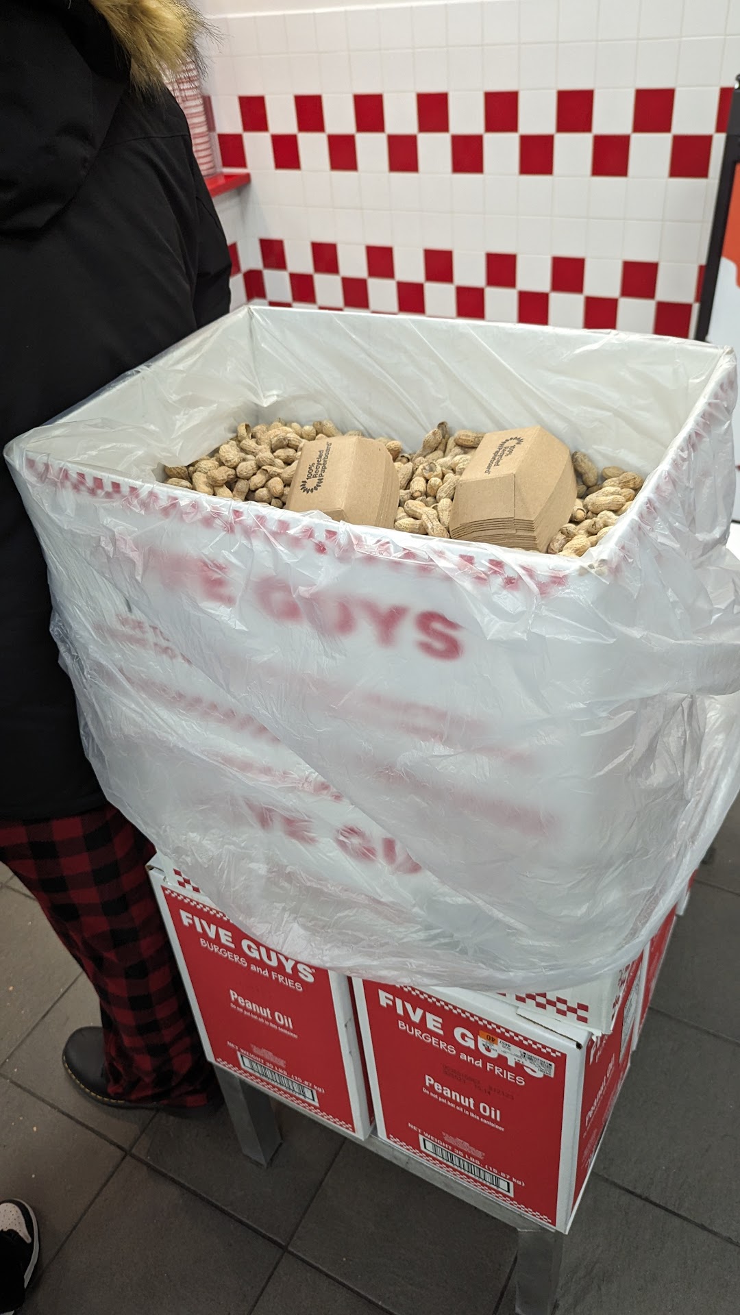 Read moreAmongst the worst customer service, even in the slums of Quincy center. The staff is lackluster and provides 0 help when ordering food. Honestly, I expected better from the high end food paradise that I once knew and loved. But no, all i witnessed was a group of disorganized, unenthusiastic cast of characters. One particular incident comes to mind, one that I think describes the penny-pinching atmosphere of 5-guys. I had finished paying a whopping 30 dollars for some burgers and fries, WITHOUT a drink. In an act of tomfoolery, waited until I got to my residence to open the grease stained bag. To my utter disbelief, I noticed that my fries were not inside. Instantly, a wave of self doubt and pity overtook by being. Further complications arose when the hamburger I received, in all its glory, was covered in masuinese sauce. In the present day, I doubt he overall well being of the 5 guys employees. Their ineptness astonishes...