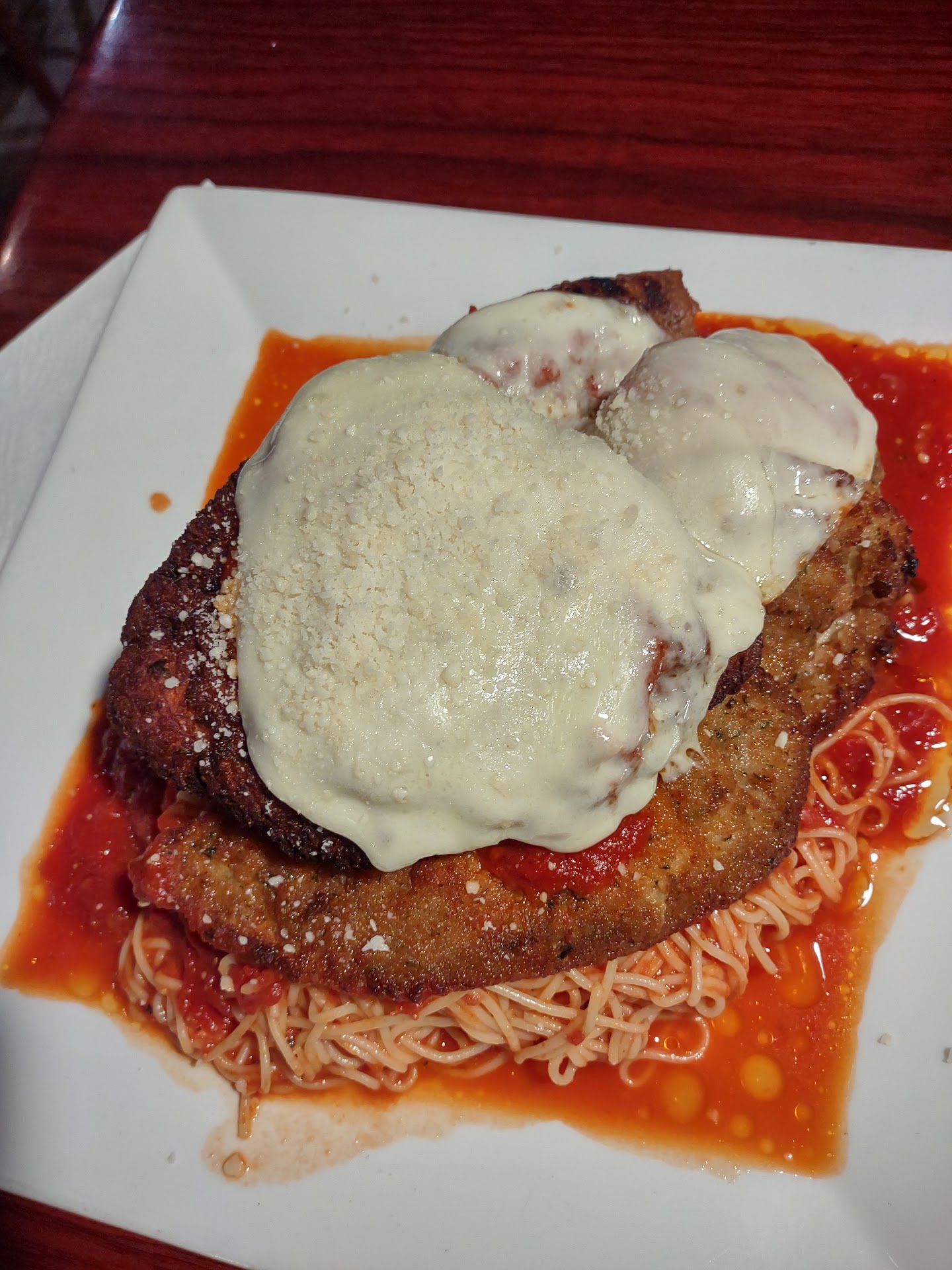 I had Rizzo's Italian Platter, my wife the Seafood Bake, and we split Buffalo Tenders and the Spinach Dip. I cannot compliment all of it more highly.