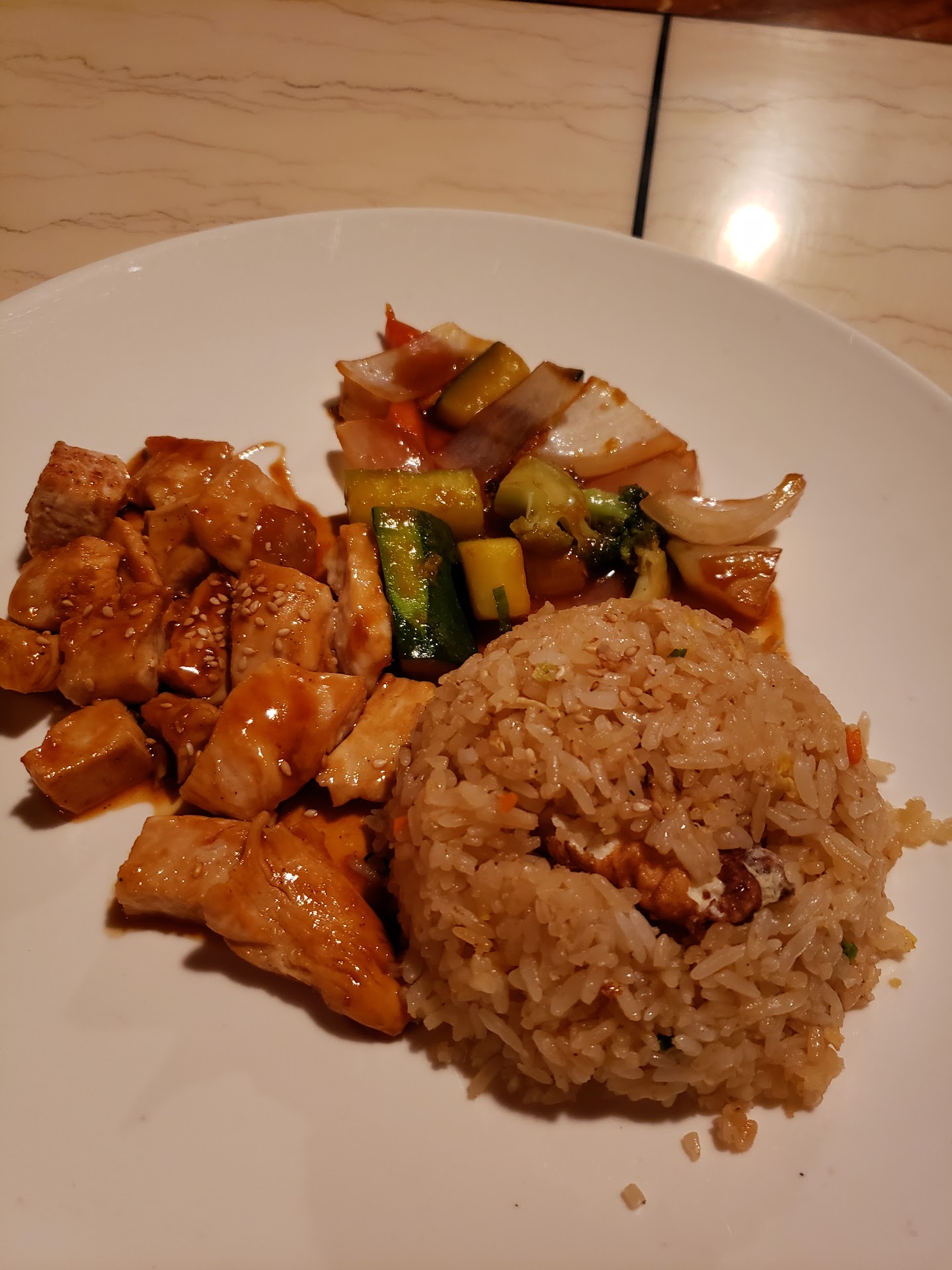 Read moreI nearly lost the hair on the back of my neck from one cook, and my eyebrows from the other cook. Little too much oil in flame to start the show. But as always the food was very good. Our waitress appeared to be Japanese or something and had a very strong accent and was hard to understand. Apparently she took our orders wrong because when the cook came out with the food to cook it he didn't have the proper Meats. He was a little upset about that as where we. But he went back in the kitchen and got it remedied and prepared our meal for us. Definitely a five-star meal. We were a little concerned about because none of the patrons wore masks in or out. Apparently the restaurant was open in violation of the Statewide mandate. We do admire that. We're not big fans of government intrusion. But we are also cautious when out in public then why we don't think masked should be forced on people, we do think that it's a smart choice that one there appears to be a lot of reported covid cases in an area it's probably prudent to wear a mask. And fortunately 2 days after we ate there my wife and I both came down Sick. We don't think it's covid-19 but one never knows. We'd still go back for lunch today if we could but unfortunately we're over an hour away. But it's still our favorite place to go whenever we have to go to Quincy for something. We wish they would open a...