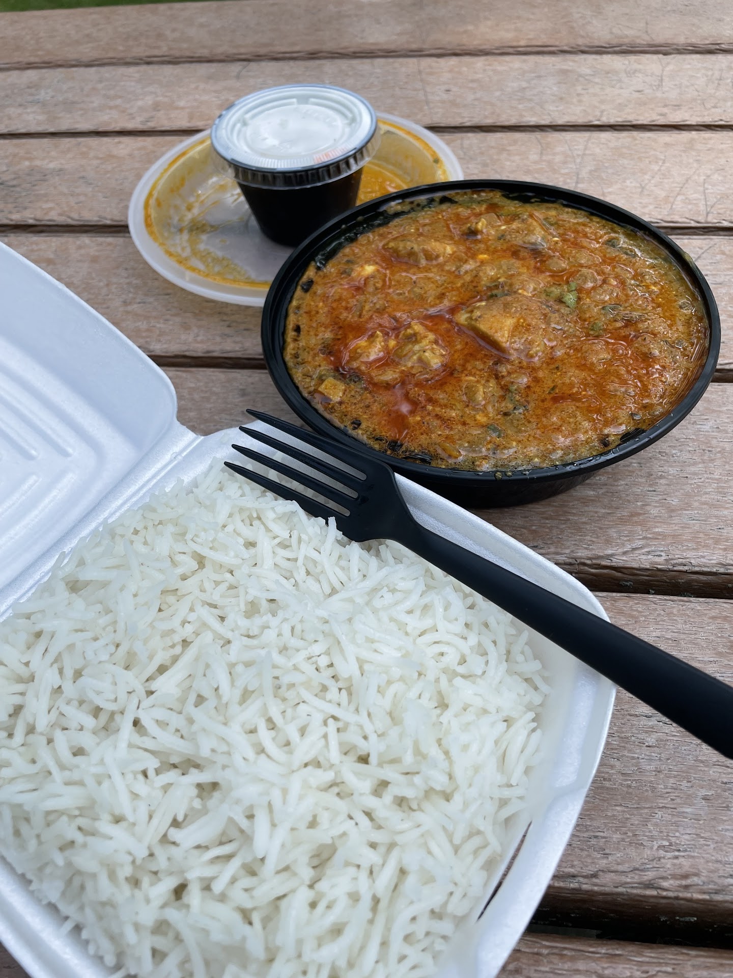 No good. Overpriced. They did give me a good amount of food, but I found chunks of meat in my vegetable Biryani. How to throw it all away. The place does not look clean, and there's nothing Bistro about this place. You can tell the man trying to run this mom-and-pop operation wants to make it work, but the woman behind him is going to lead him to ruin. They were speaking Hindi (not my native language), but I could tell they were having marital problems. They got into some sort of small altercation about a mysterious phone call. Perhaps another lover? I would never know. Also, the woman purposely did not give me my complete change, a whopping $0.53. Maybe she was hoping that I would just walk away without food for my piggy bank. If I was missing $0.53 to order something I would have to beg. It's usually a bad idea to mix pleasure with business, especially in front of customers. Vegetable Samosa...