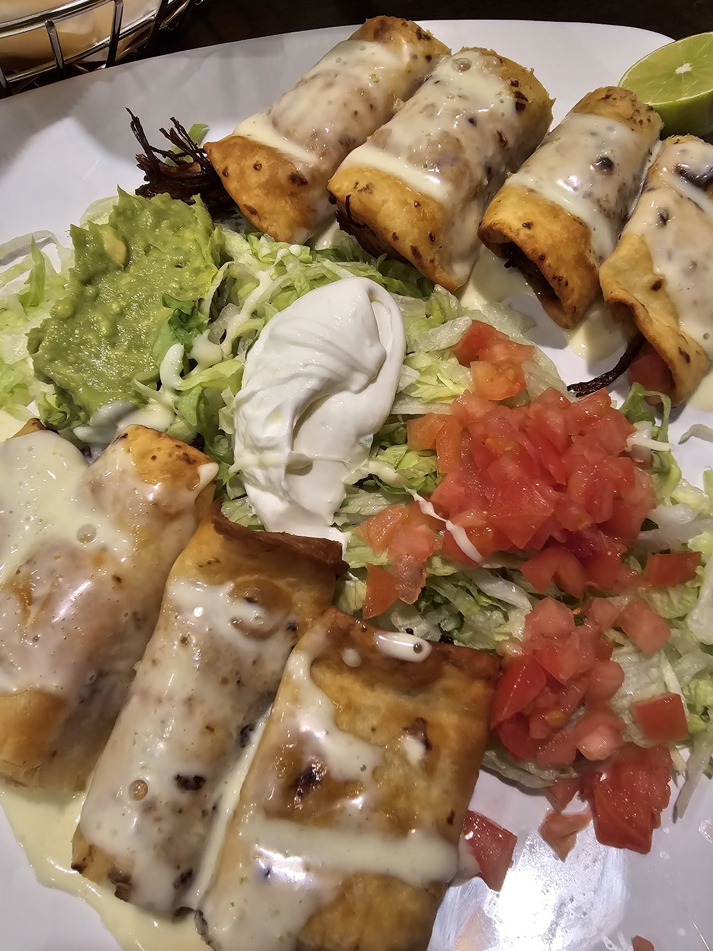 My meal was delicious ๐ I ordered the Flautas, with a side of rice and beans and a Mango Margarita. My Flautas had a mix of chicken and beef (I wanted to try both meats), but you can get them with just beef or chicken. It is served with shredded lettce, guacamole, and pico de gallo. The beef was flavorful, and the chicken was cooked just right, not dry. The Mango Margarita was amazing, I decided not to have the rim of the glass sugared, and the drink was perfectly mixed. It wasn't too sweet, and the amount of alcohol was just right. I could probably dink a whole pitcher. ๐ Our server Issac was awesome and very attentive. Overall, my experience was awesome ๐ ๐ The food was great, and the wait wasn't very long. Even if it was, it would be worth...