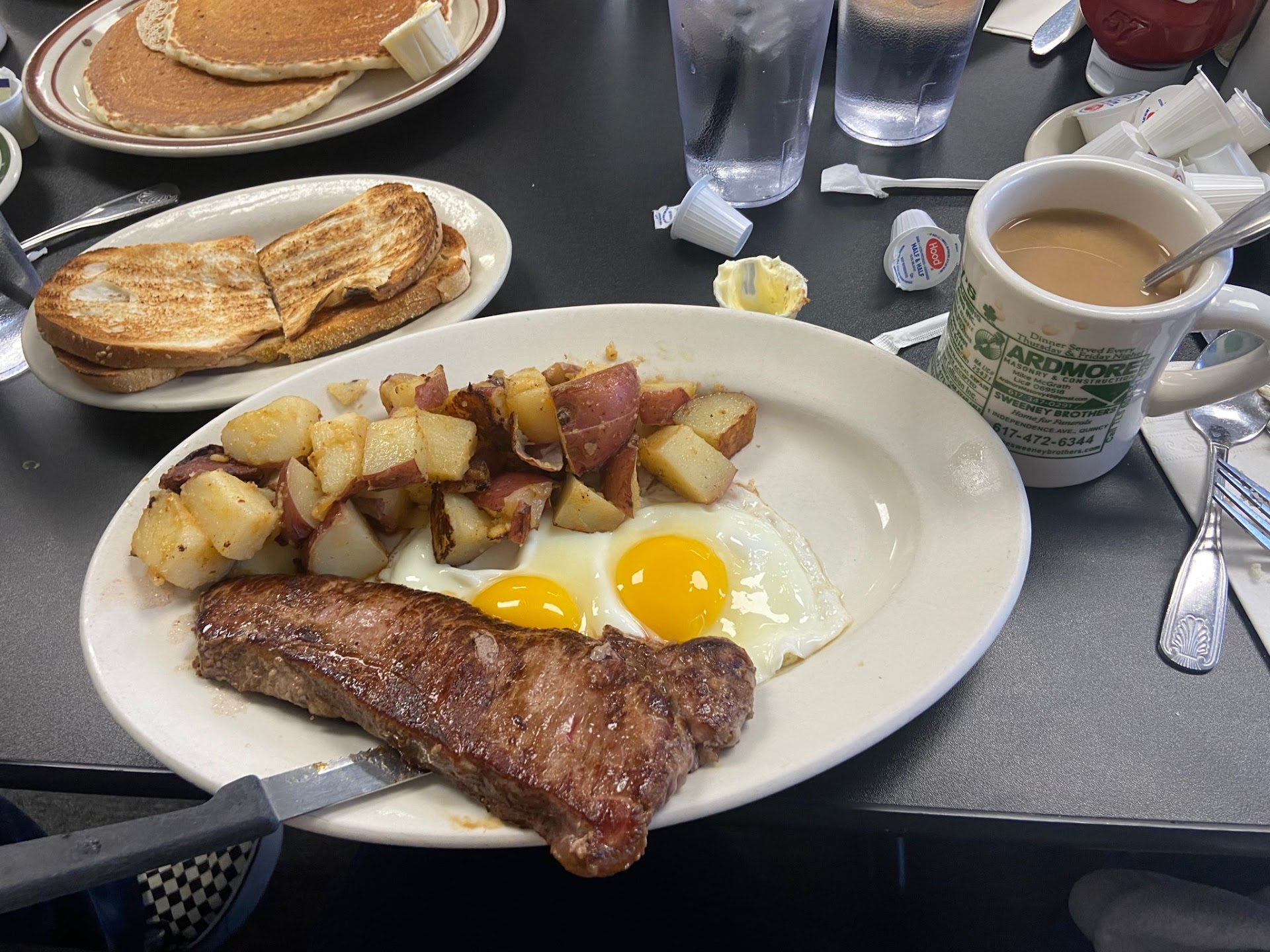 Setting/Vibes: Typical diner set-up when you walk in with wooden tables in separate rooms for bigger groups. The kind of place that has the pre-packaged jelly on the table.
