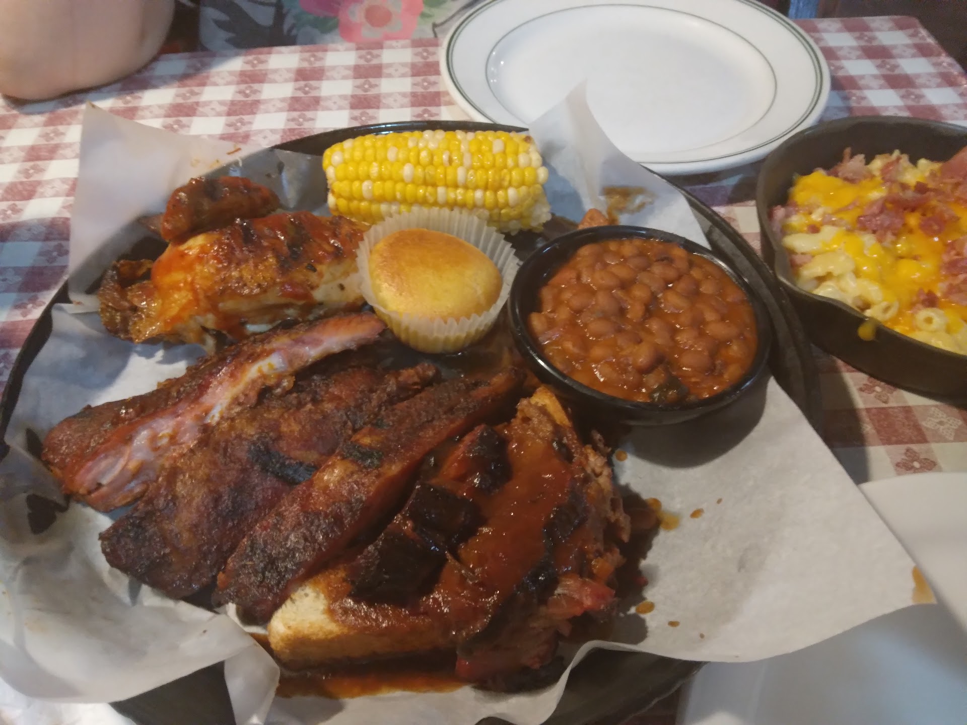 The food was good, but not anything to write home about. Maybe I went in with too high expectations because of everything I had heard and read. The food was luke warm at best, including the brand new fresh to the salad bar pulled pork they put out that we watched them put out and got some right away. The chili needed more salt but otherwise was good but also not warm enough. The chicken and rice soup was way to watery and lacked flavor in the broth. The corn muffin and corn on the cob that came with the ribs was good but I would have liked a bit of butter for them. The ribs were a tad above what I would expect from a Logan's or Applebee's but weren't hot so they may have been better if they were hot and fresh.