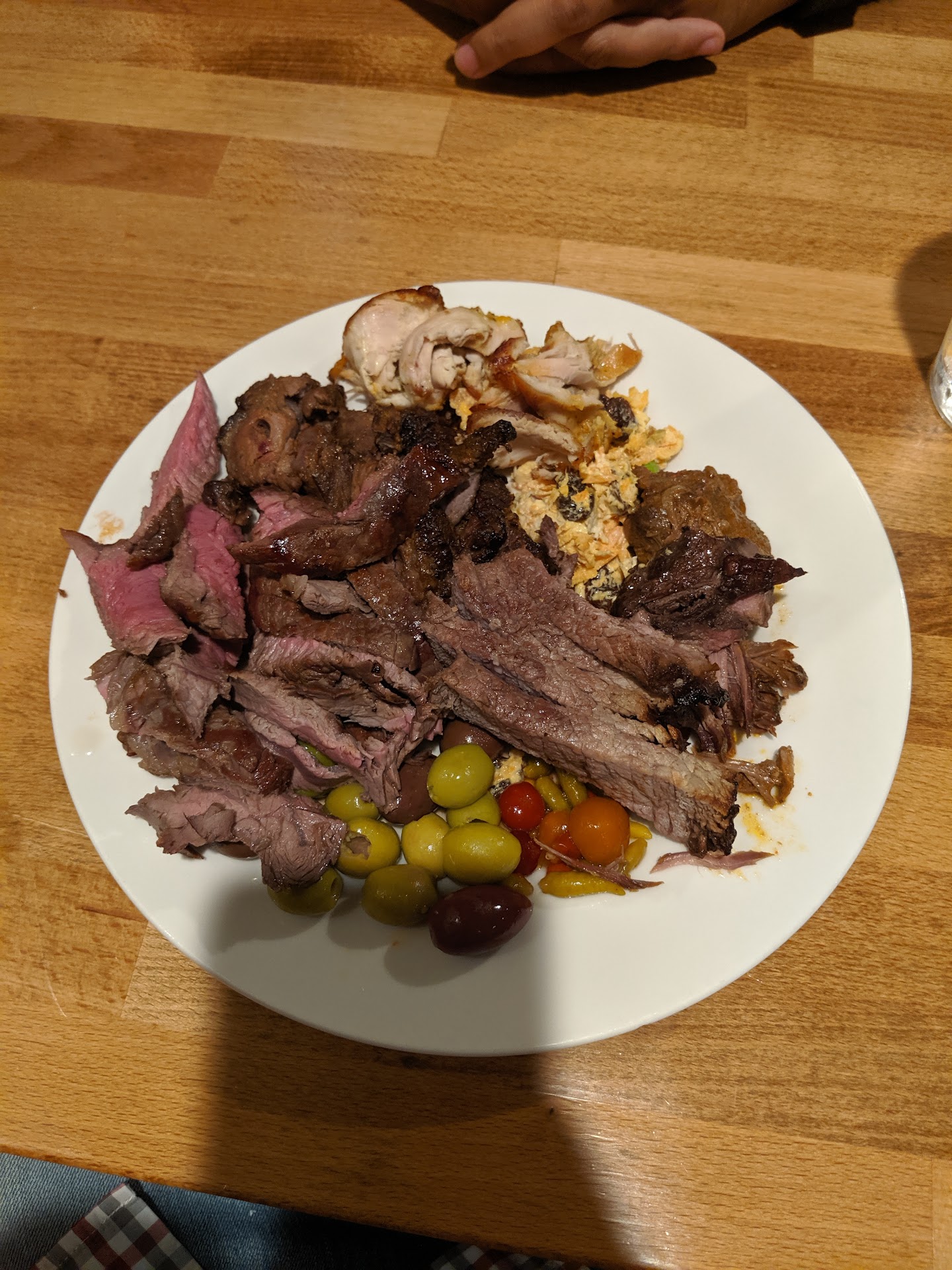 I tried most of the beef (top sirloin, garlic steak, brisket, Picanha, tri-tip sirloin) and the chicken thighs. Most meats are available in a variety of doneness and the meat man will usually ask you how you prefer it. The Picanha was only available well done, which was unfortunate. The garlic steak was also not available rare or medium rare. Both meats still tasted good, I would just prefer them a little more rare than what was available at the time. The chicken thighs were dry, wasn't a fan of it.