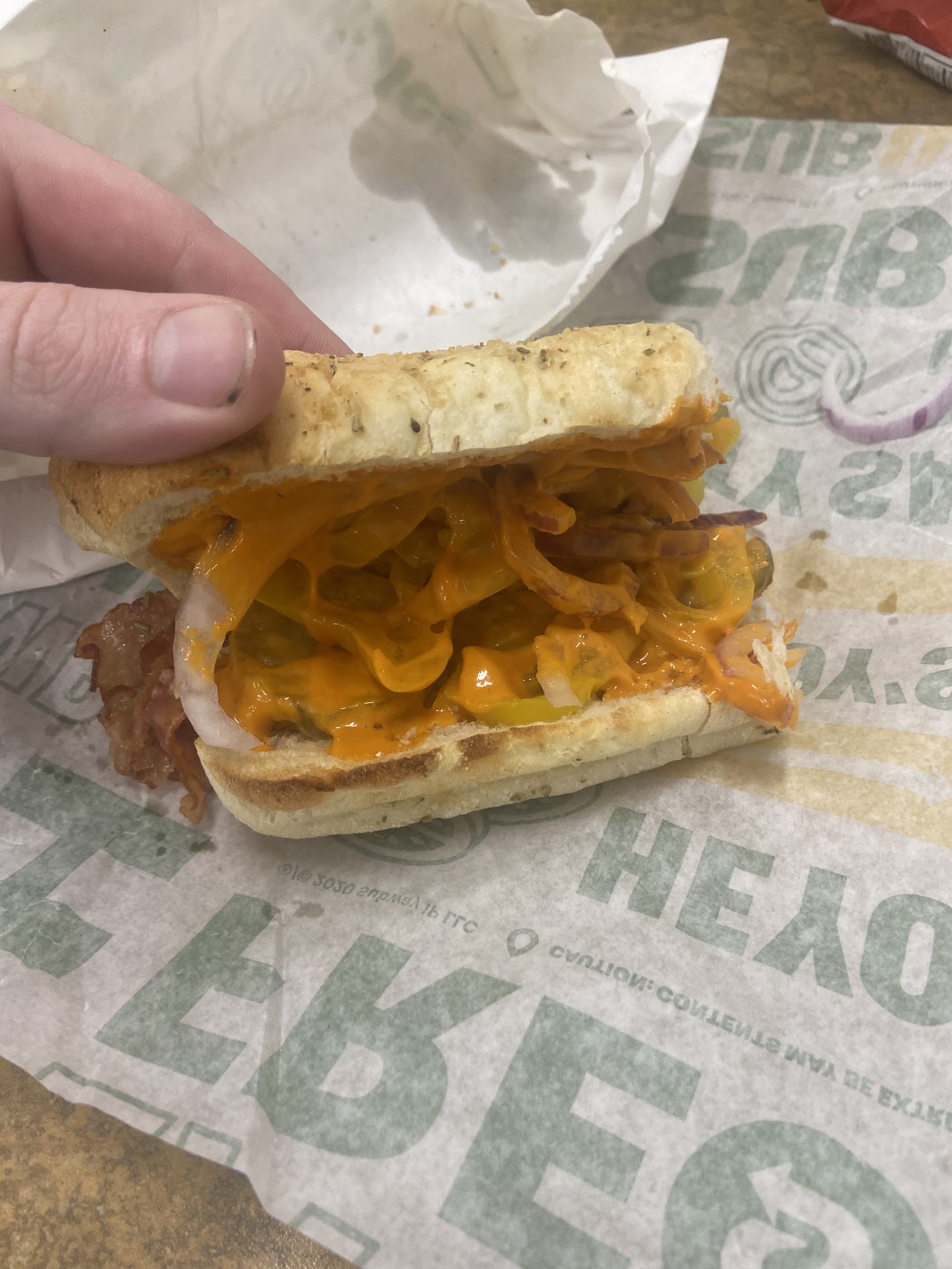 I had ordered a modified sandwich and whenever I got there, I picked it up and whenever I got into my car, I opened it to see what it looked like, and half of the sandwich was squished as well as it not being toasted as I asked. I went back in and asked for it to be remade, and she looked at me and said “ I’d have to ask my manager first and they are not here right now.” So I looked at her and said “are you serious?” And she said yes, so I turned around and threw the sandwich in the trash. I Don’t usually bother to take it this far, but that just pissed me off, she couldn’t remake my food because her manager wasn’t there to tell her? That’s ignorant, won’t be getting anything from Subway again...