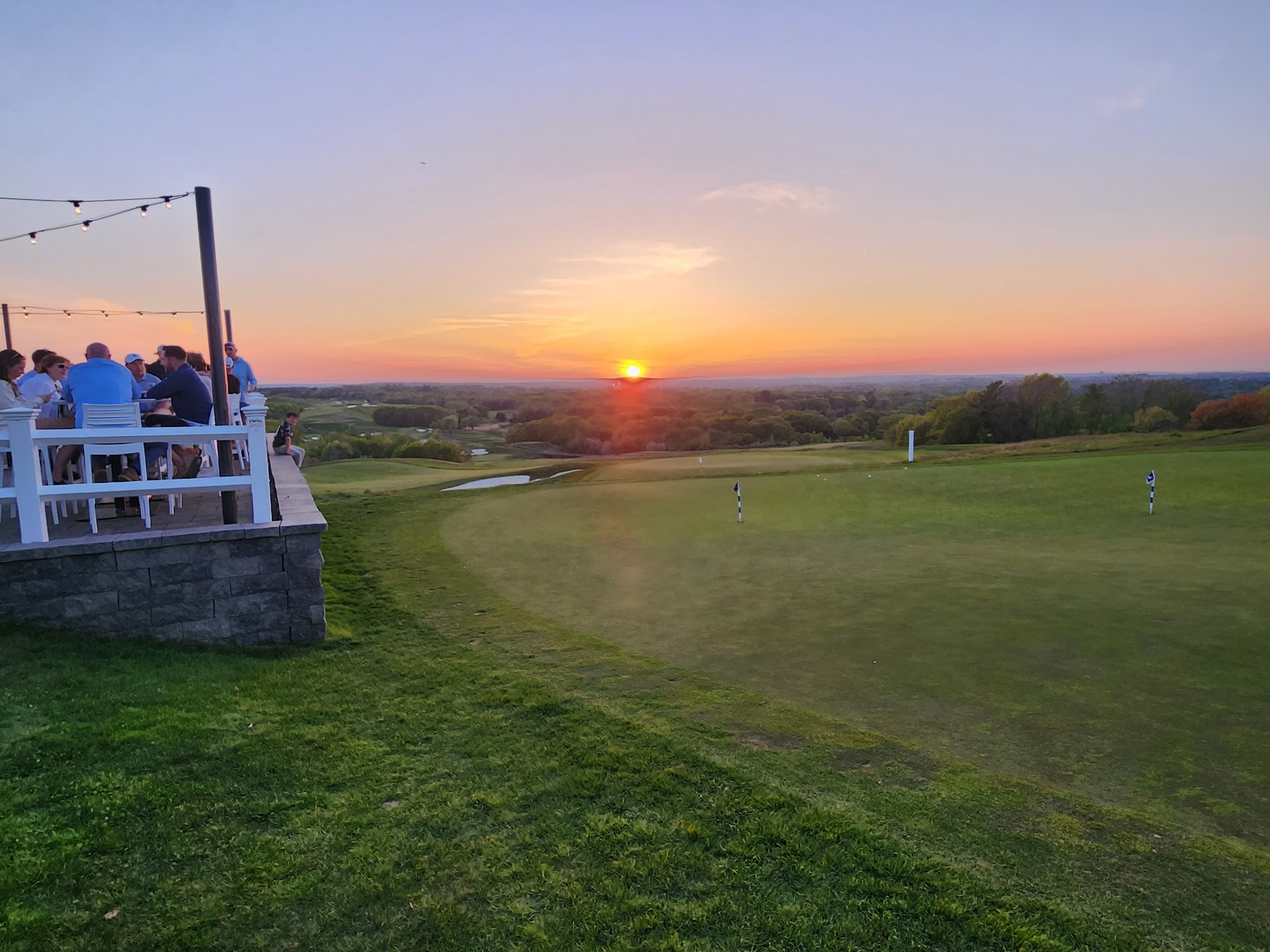 I love that crossing nines is in side granite linx golf course. The view of the course and Boston from atop the hill is great. It's mostly outside dining. The service wasn't great as we waited for a waitress for a good 35 minutes. We finally had to flag the wait staff down and it really wasnt that busy, as I have seen it in the past. It would have been great to order drinks and food from the QR code, but only a menu was visible. When we did get the food it was delicious. I gave the food a 4 because I don't like just a small bag of potato chips when a wrap costs so much money. I honestly thought I was getting fries. I don't need them anyway, but would be giving the food...