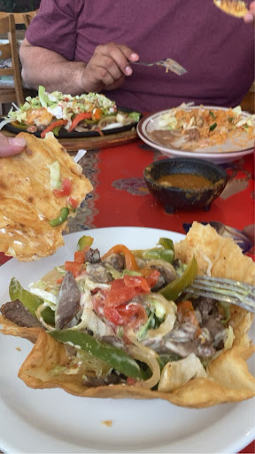 I had a taco salad fajita- delicious!!! My husband had T-bone steak, came with shrimp and veggies. The meat was so tender and we enjoyed every single bite! It was a very homey taste for us. Definitely recommend. The service was great and the staff were friendly as they are...