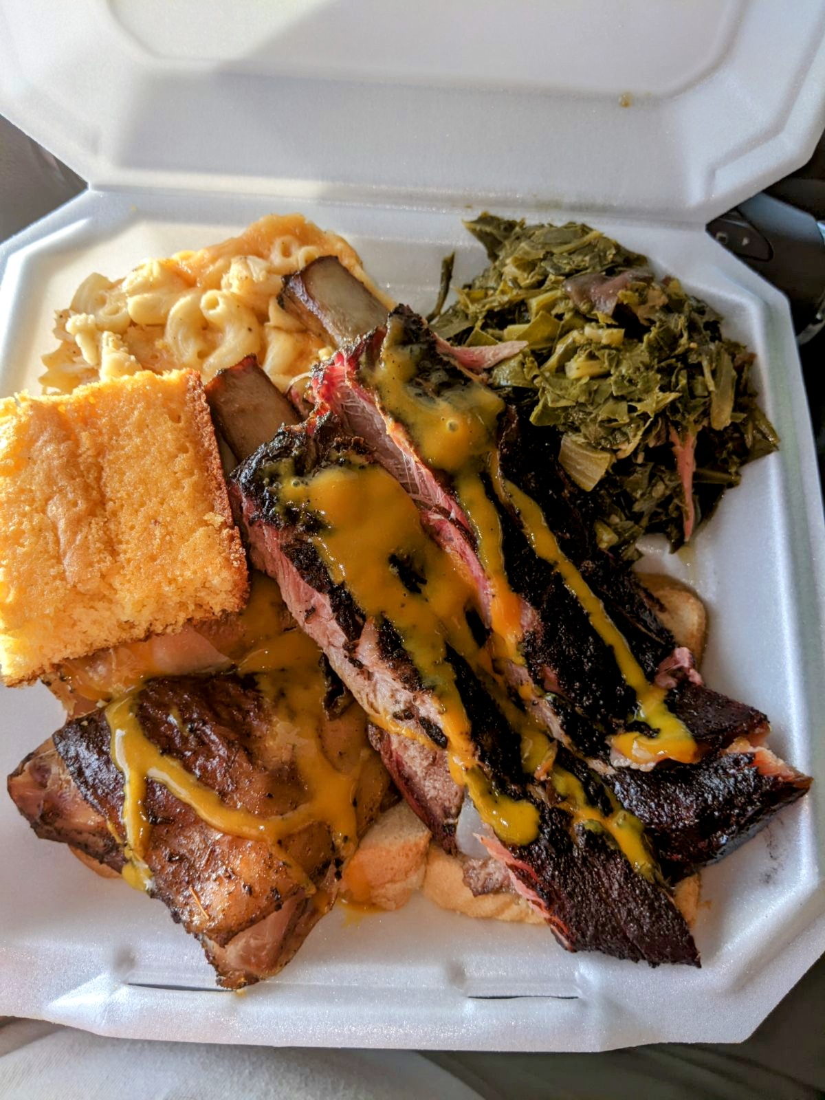 Ā Ā Ā Read moreThey brought my food to me cause Iām a trucker and couldnāt get my truck into their location, the food was great. Ribs were fall of the bone tinder seasoned well smoked well the sauce was tangy sweet with just a hint of spice collard greens would seasoned well, still had neck bones in the greens which is awesome, and not too salty like a a lot of folks make them baked beans were good too. All in all a 10/10 experience would recommend to anyone...