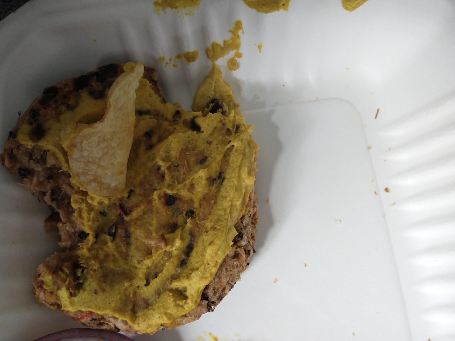 Read moreThe burger was overly season ,kinda chunky and hard to consume it with the full pieces of beans in it. I would prefer it to be grind in a paste so its texture is homogeneous.The chips where fine i personally wouldn't go there again but if your okay with it having beans then you could eat it. Was kinda disappointed because it didn't taste like burger and the season way to strong with the smell and pigment. I tried eating it by scraping the seasoning off but i ended up eating it without the meat. I also would prefer if they had drinks that are fruit based without vegetables since i really wanted to order something fruity but everything had vegetables in it. Customer service 10/10 the people in there super nice and chill. Honestly the workers are very talkative and make sure that everything is okay with the establishment.Even though the floor could use some cleaning the content like tables and utensils where very clean. Keep in mind this is just my opinion and I'm not a vegan so i still recommend you giving it a go...