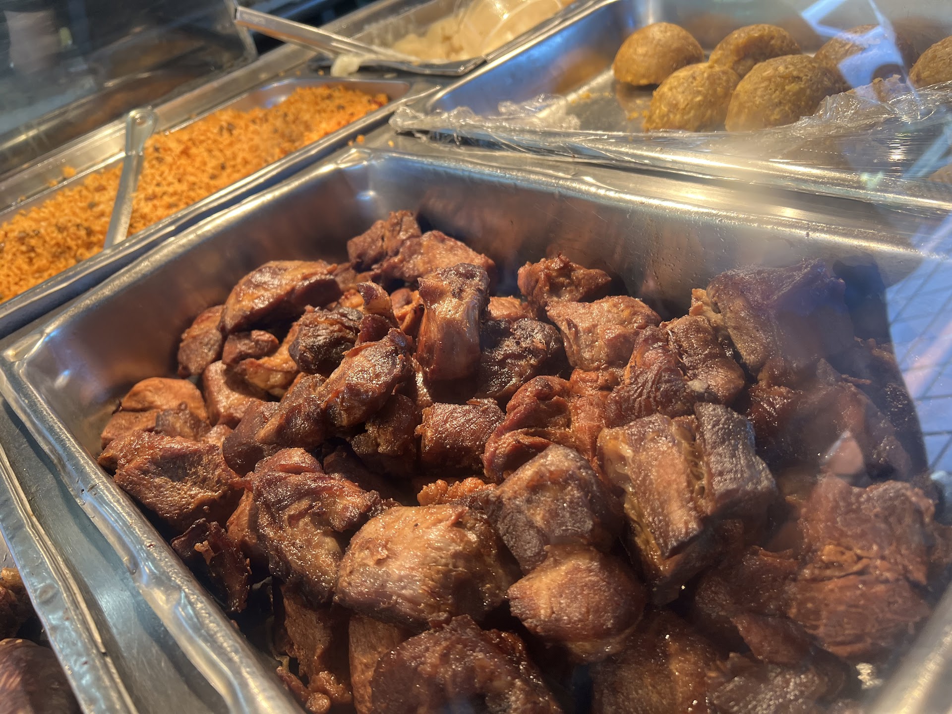 They sell pretty much everything by the pound (or half pound). Roast pork. Fried pork. Ribs. And chicken - chicken is sold by the half chicken. It all looked so good so I got a pound if each (for 2 people). More than enough food. Also had sweet potato and plantains. All of the food is good. Every. Bit. Of. It. I loved the ribs and roast pork the most. There are rice and beans and yuca which I did not try. They also have (I only know it by what its called on another island) pudding, but I dont care for that.