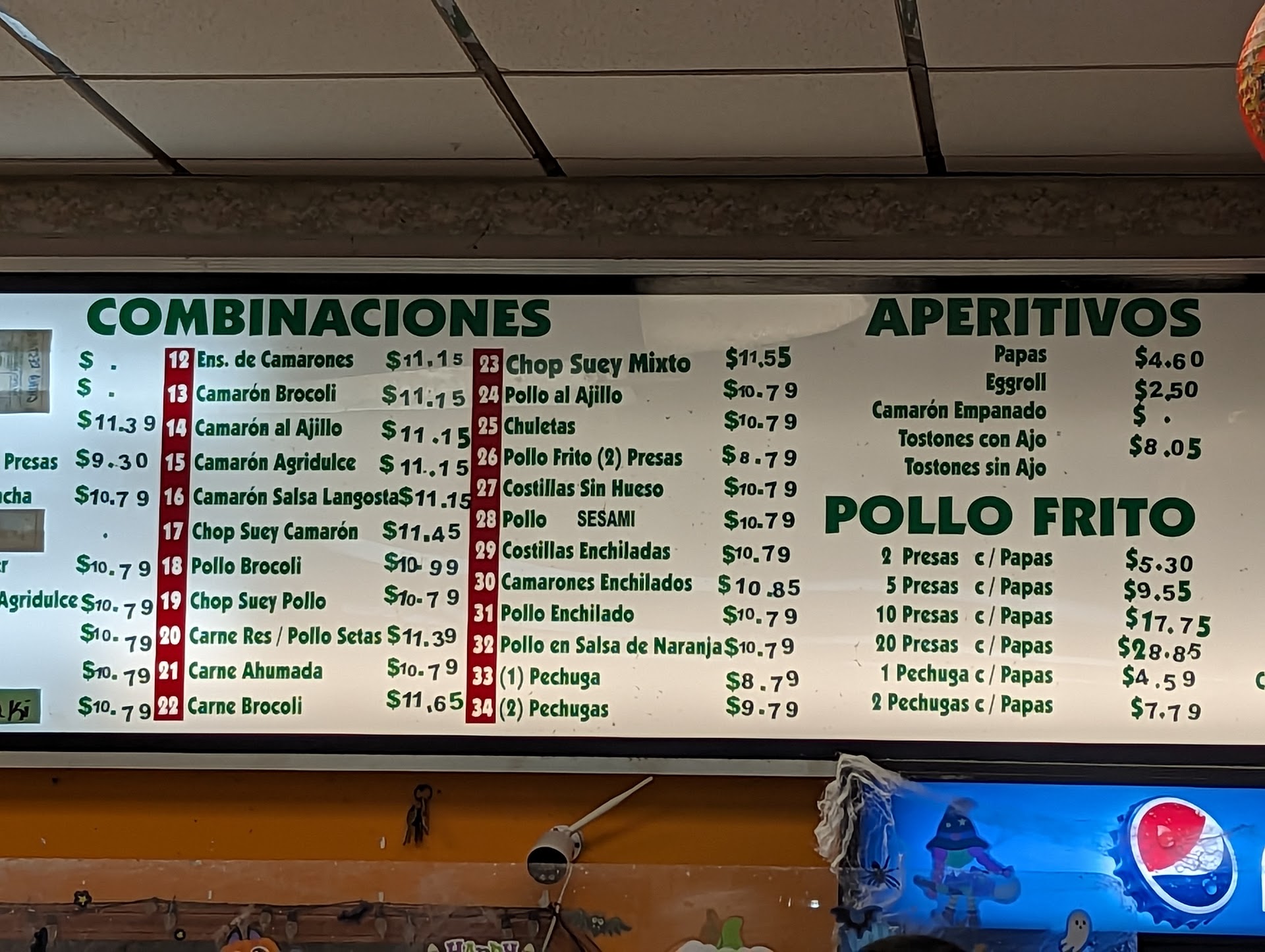 English: I loved it! We ordered 2 combinations to go and that brought us an order of small tostones (includes about 10 and they are delicious). The orange chicken and boneless ribs were both good in flavor and tender. The rice has a good flavor and a good mix of meats and vegetables, and the egg rolls are huge, crunchy on the outside and taste good too. My other favorite part is that they wrapped the foam take-out bowls so the meat dressings or anything else doesn't spill around the bag, something I've never seen other restaurants do. They also gave plates, many napkins and many dressings. I think they served us so much that this serves for about 4 days and we can't complain, it's worth...
