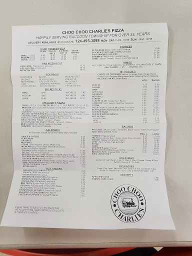 My family has ordered at Choo Choos for 20+ years. We used to love it! Now we can't even eat it. It is so greasy that we get sick. Even the salads are greasy. Also the last few times that we would order they messed up our order. So we ended up having to leave and drive down to the shop to get it fixed. The pizza is soggy with grease. Every time I would eat there I would be so sick later in the day and into the next day. The box that the pizza or calzone comes in would be soaked through with grease. We would have to put a towel under it so we didn't mess up our stuff with grease. When you cut into your calzone the grease pours out. When you take a bite more grease squirts out. I am not sure what has happened to them, but they have definitely gone down hill. We don't order there anymore. We gave a lot of chances. We will only order from Mikey's now. We live very close to Mikey's but would still drive all the way to Choo Choo's to get our food. We kept holding on out of loyalty hoping it would get better. It never did. It is also very hard to place your order. The person that answers the phone will put you on hold half way through your order. Sometimes more than once. No wonder they mess things up. But unless you like soggy pizza and food filled with grease I would suggest you go somewhere else. Sorry guys. I hope you can improve things and maybe we will...
