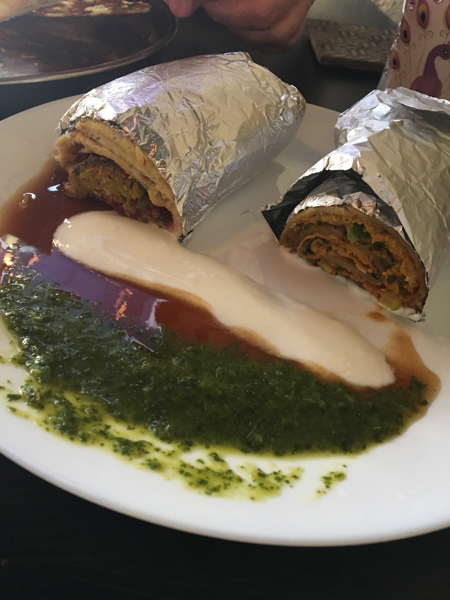 Ā Ā Ā Read moreI was visiting Racine and decided to venture into the city to try something new for dinner, and the reviews for this place DID NOT disappoint! Immediately upon walking in, the atmosphere was so warm and inviting: the vivid, bold colors of the fabric that adorned the walls and flashes of gold from the fairy lights gave a very comforting environment. The food, of course, was every bit as incredible as the interior decorating. Starting off with the iced green tea was the perfect choice, and it actually reminded me very much of tea Iāve had in the Middle East. The whole place actually gave me that vibe! We tried the chicken tikka, falafel, and anda roti. Warning: if you try the anda roti, it is HOT! It reminded me of the Harry Potter quote: āyouāre going to suffer, but youāre going to be happy about itā. Worth. Every. Bit. The falafel was a beautiful combination of flavors, so was the chicken tikka, and the extra sauce was perfect for dipping the GIANT homemade naan in (whose aroma practically filled the restaurant with mouth watering smells). The yogurt had a zesty flavor as well that paired perfectly with the spice. It was an amazing location with a beautiful feeling and it left me feeling satisfied...